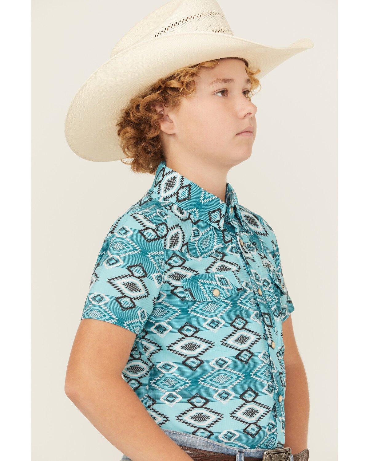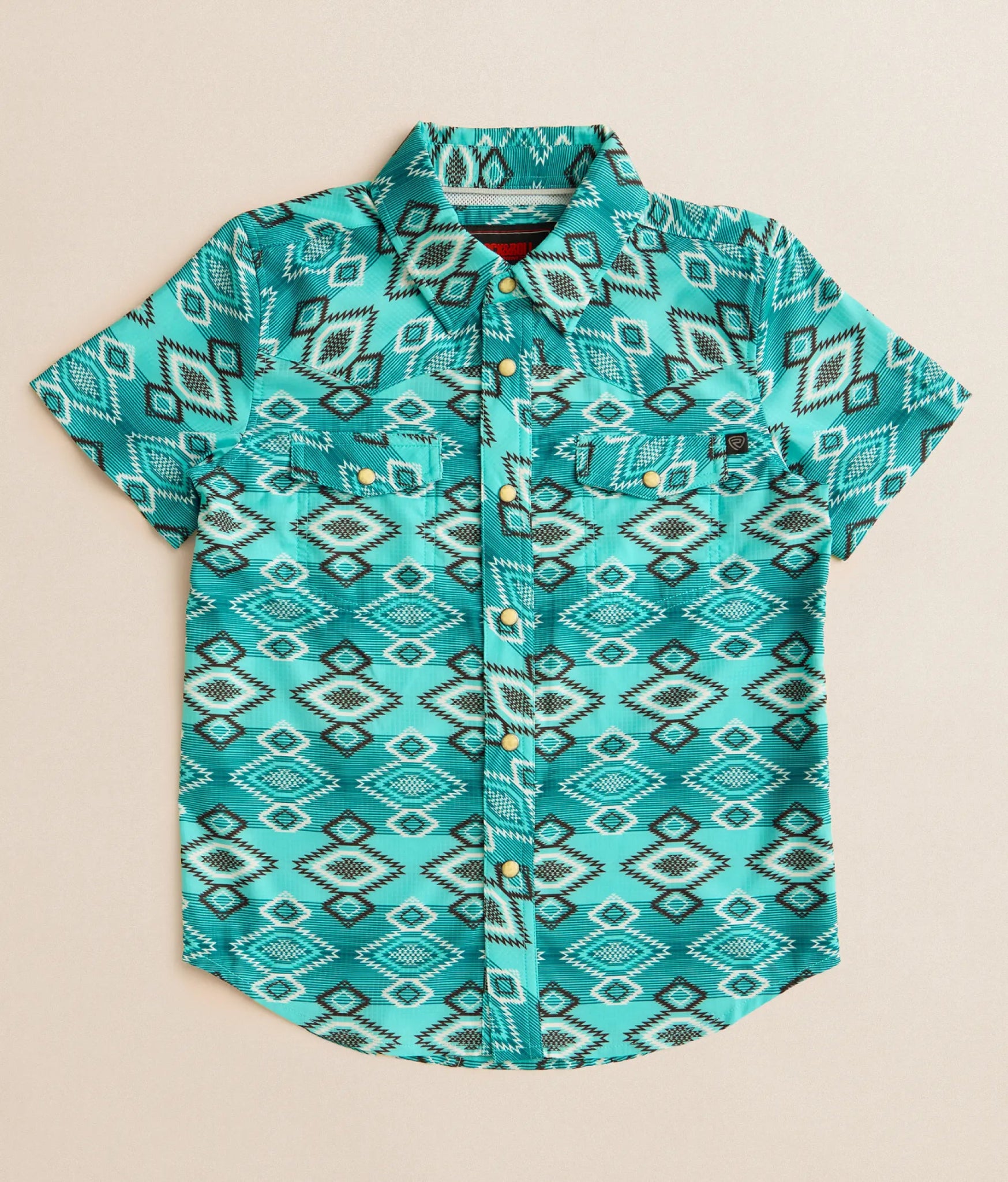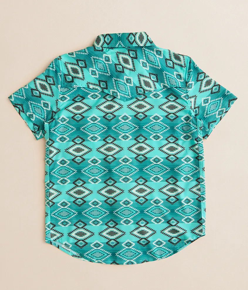 Step up his style game with the Boys - Rock & Roll Denim Tek Aztec Performance Shirt! This shirt combines western appeal in a vibrant pattern that is sure to make a statement at special events. Embrace the spirit of rock 'n' roll with some western edge when you add this to his wardrobe today!