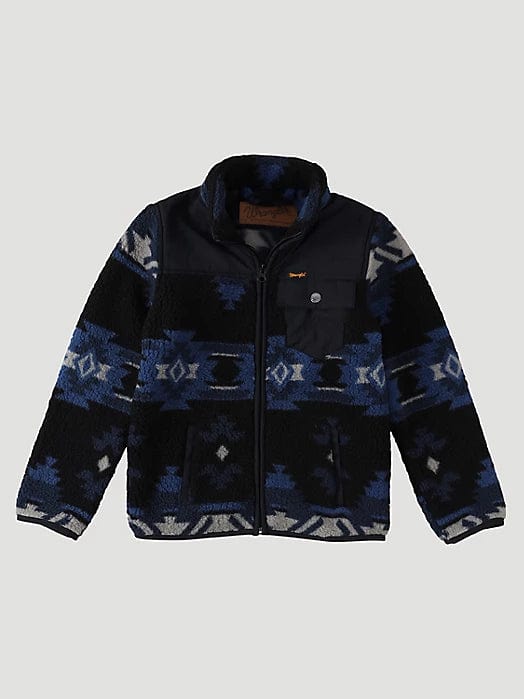 With cool weather on the horizon, our Boy's Wrangler® Zip Front Lightweight Ripstop Sherpa Jacket will keep him warm. It's made of double brushed sherpa for comfort. This jacket comes with a chest pocket that snaps, welt hand pockets, ripstop fabric at the yoke, and a zip closure for easy layering.