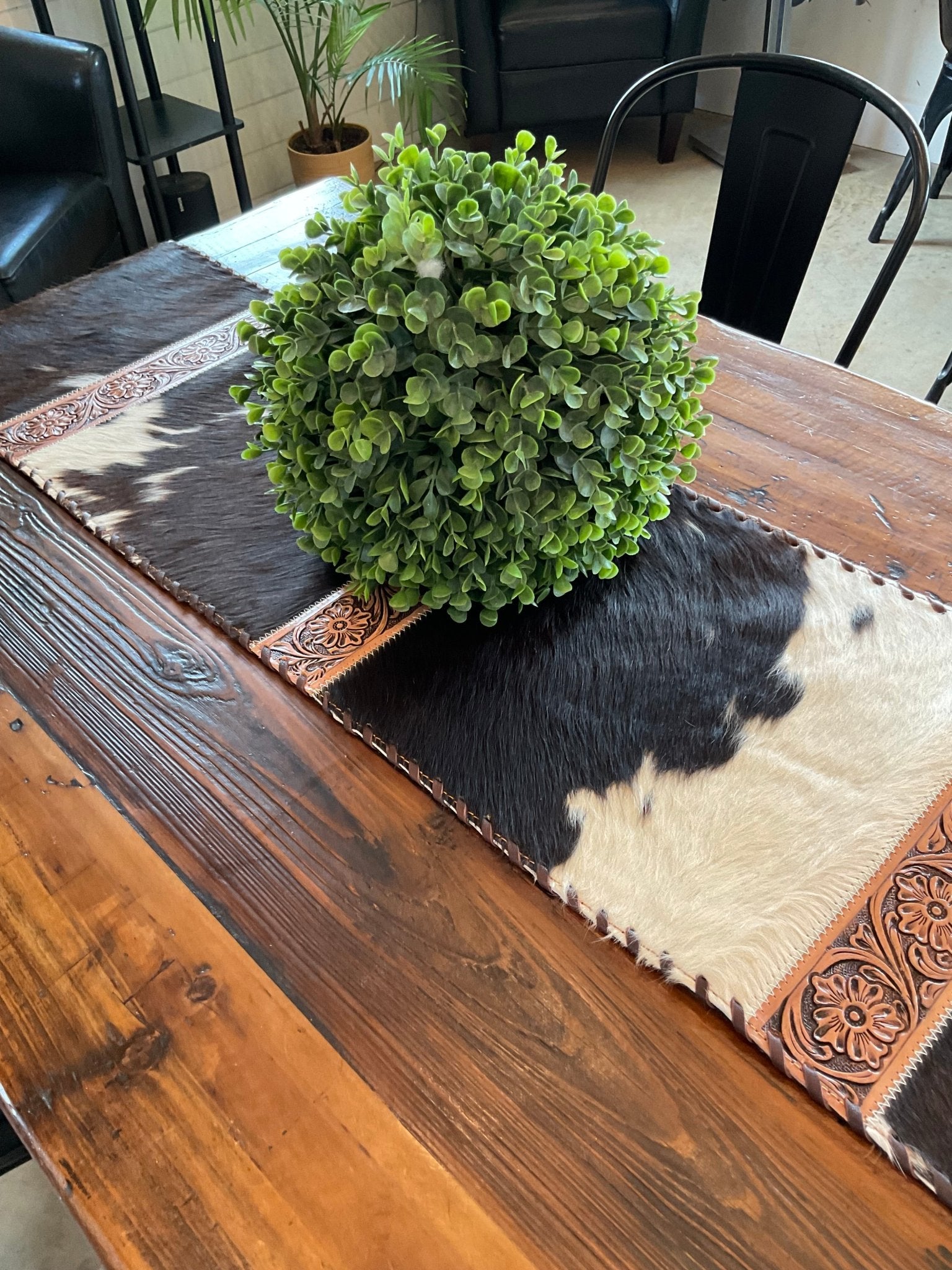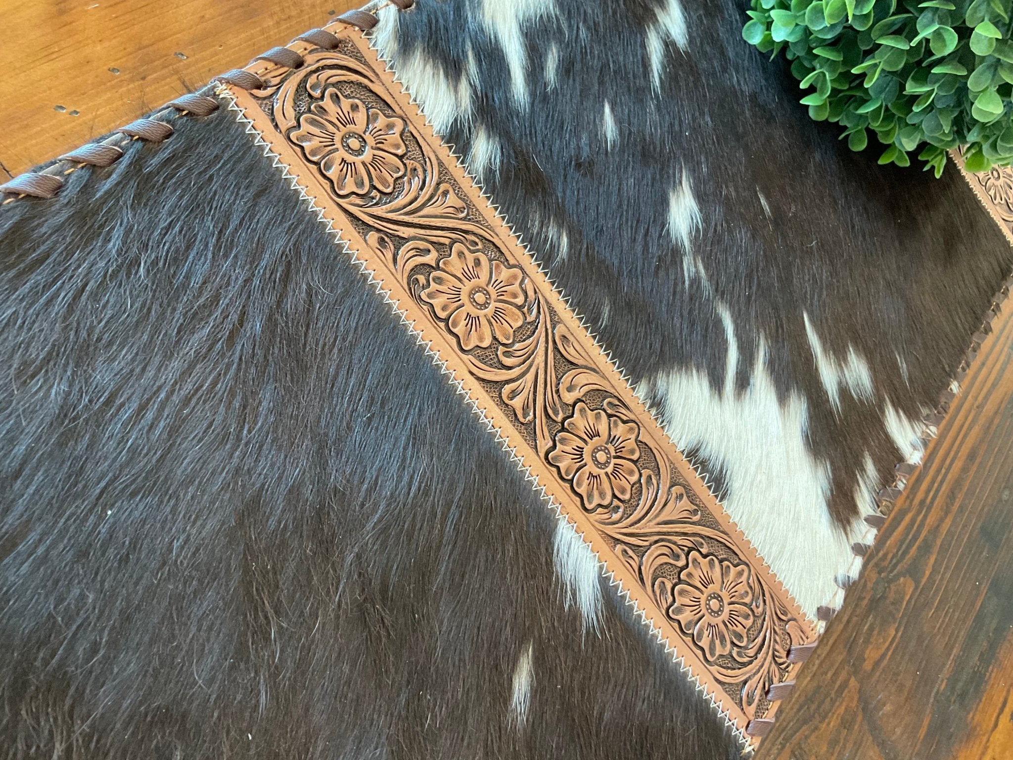 Rustic Cowhide & Tooled Leather Table Runner – Western Home Decor