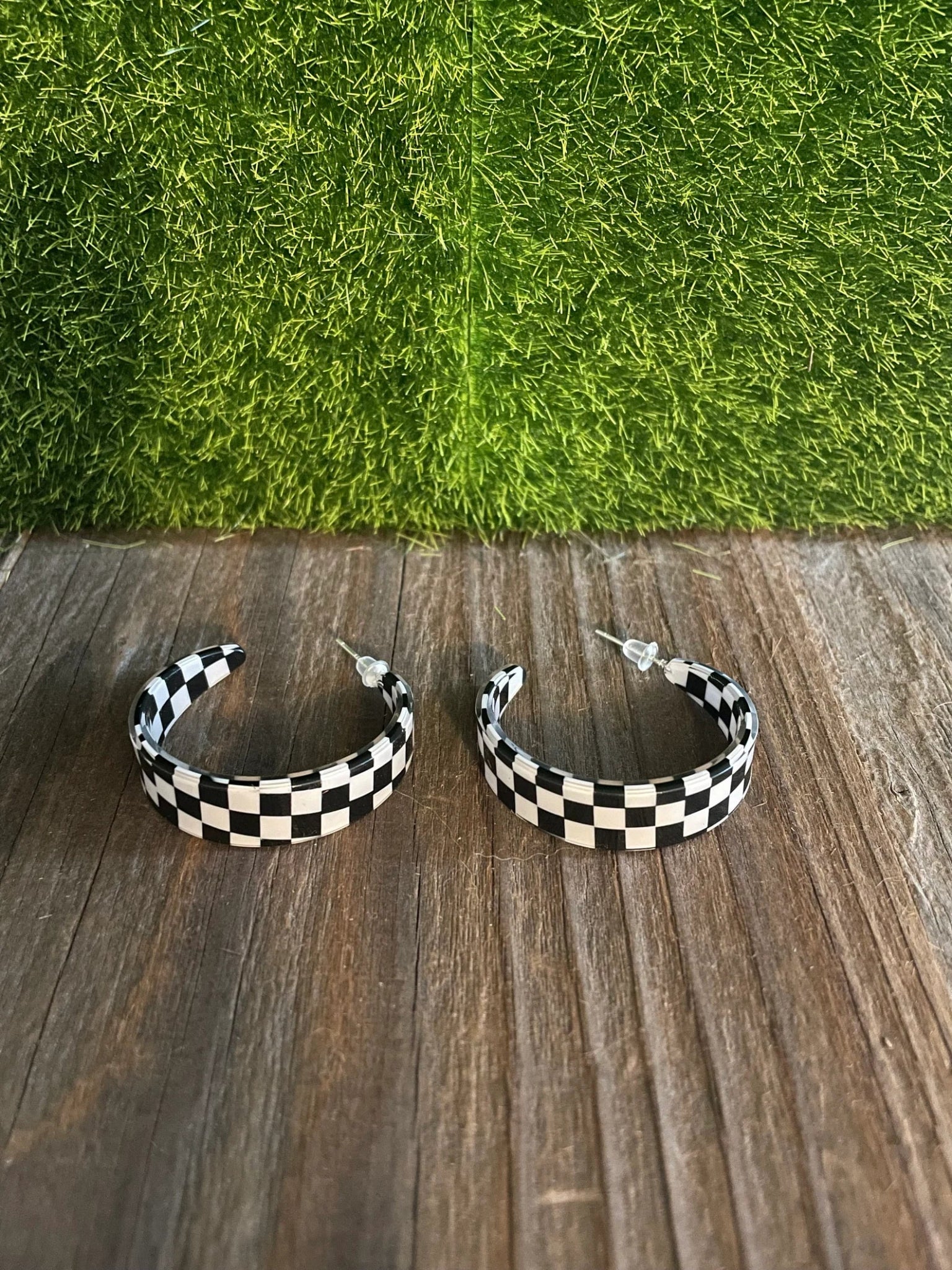 Turn up the attitude with the bold and trendy Blazin Roxx Checkered Print Hoop Earrings. Featuring a classic hoop silhouette with a modern twist, these earrings showcase a striking black-and-white checkered print that adds instant edge to any outfit.