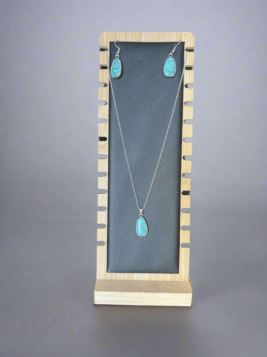 Accessorize with a simple pendent necklace that is sure to compliment your outfit. Blazin Roxx by M&F ladies set features an oval stone on a simple chain, and matching single oval stone dangle earrings.