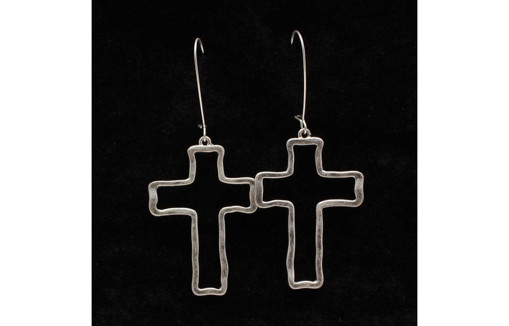 These Silver Strike earrings by M&F Western Products will be your favorite. Drop style back with hanging outlined cross.