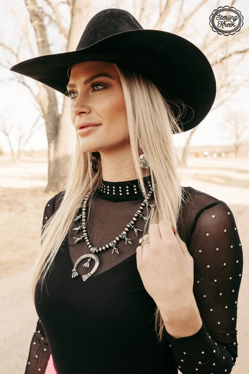 Get ready to wrangle your style with the Tribal Cowgal Necklace—a playful piece that blends Western charm with everyday fashion. This necklace features trendy Navajo-style pearls accented by a dangling silver horseshoe for a touch of rustic luck. Measuring 13 inches with a 3-inch adjustable chain, it’s perfect for layering with other necklaces or wearing solo as a statement piece. Whether you’re headed to the rodeo, a night out, or just want to add a hint of cowgirl spirit, this necklace is a must-have Western accessory