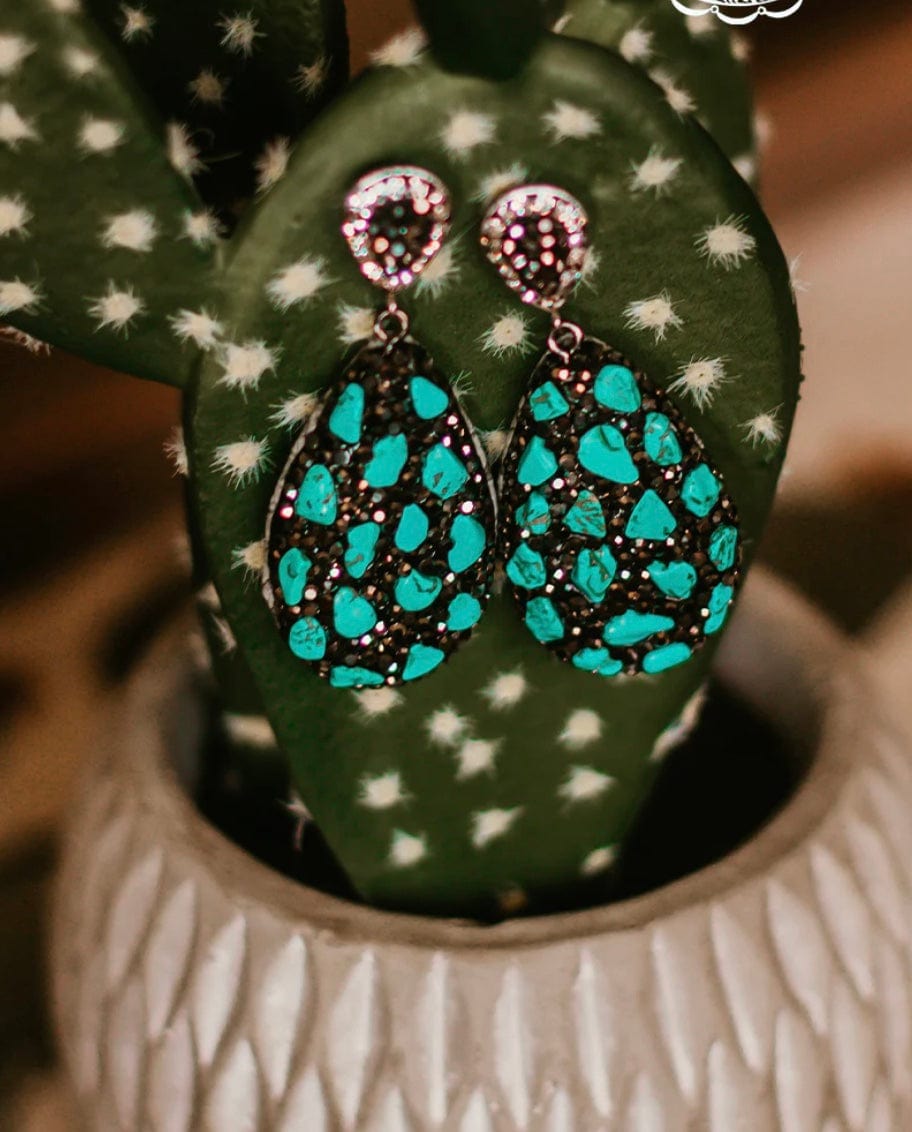 These are timeless! Black and charcoal rhinestones with turquoise rocks! These are perfect to spice up any outfit!