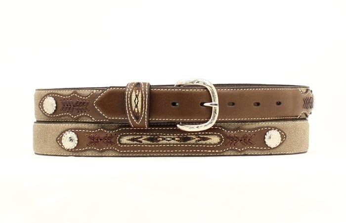 This Nocona belt by M&F Western Products is perfect to give your little one that western look. It features a brown distressed strap with a fabric inset for a very grown up look.
