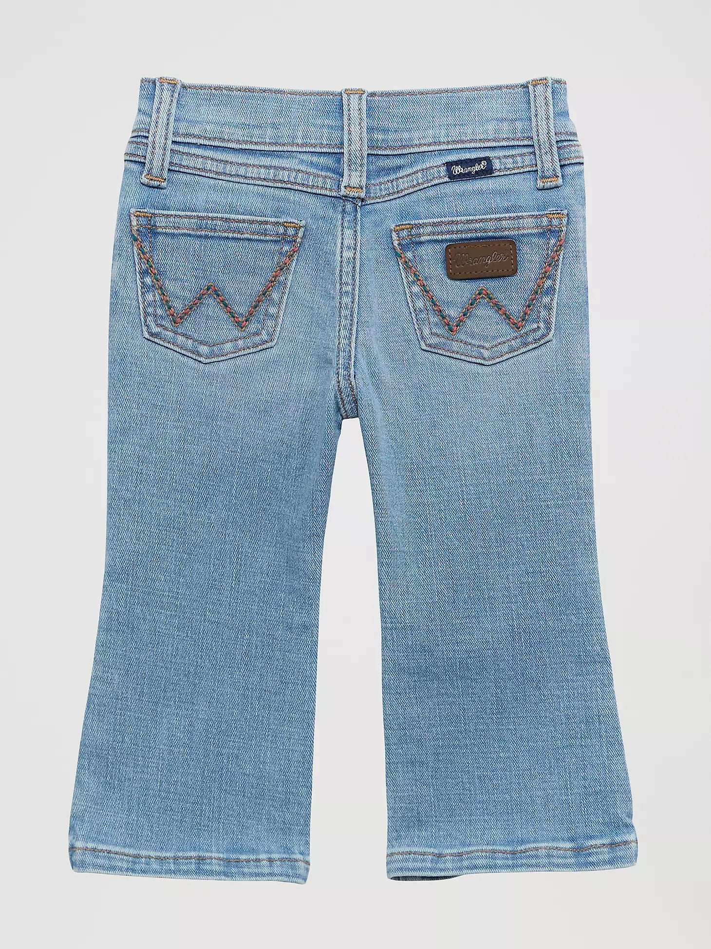 The Wrangler Baby Girl Bootcut Jeans bring classic western style to everyday baby wear with a fun, colorful touch. Made from soft light-wash denim, these jeans feature a bootcut leg that pairs perfectly with tiny boots or sneakers.
