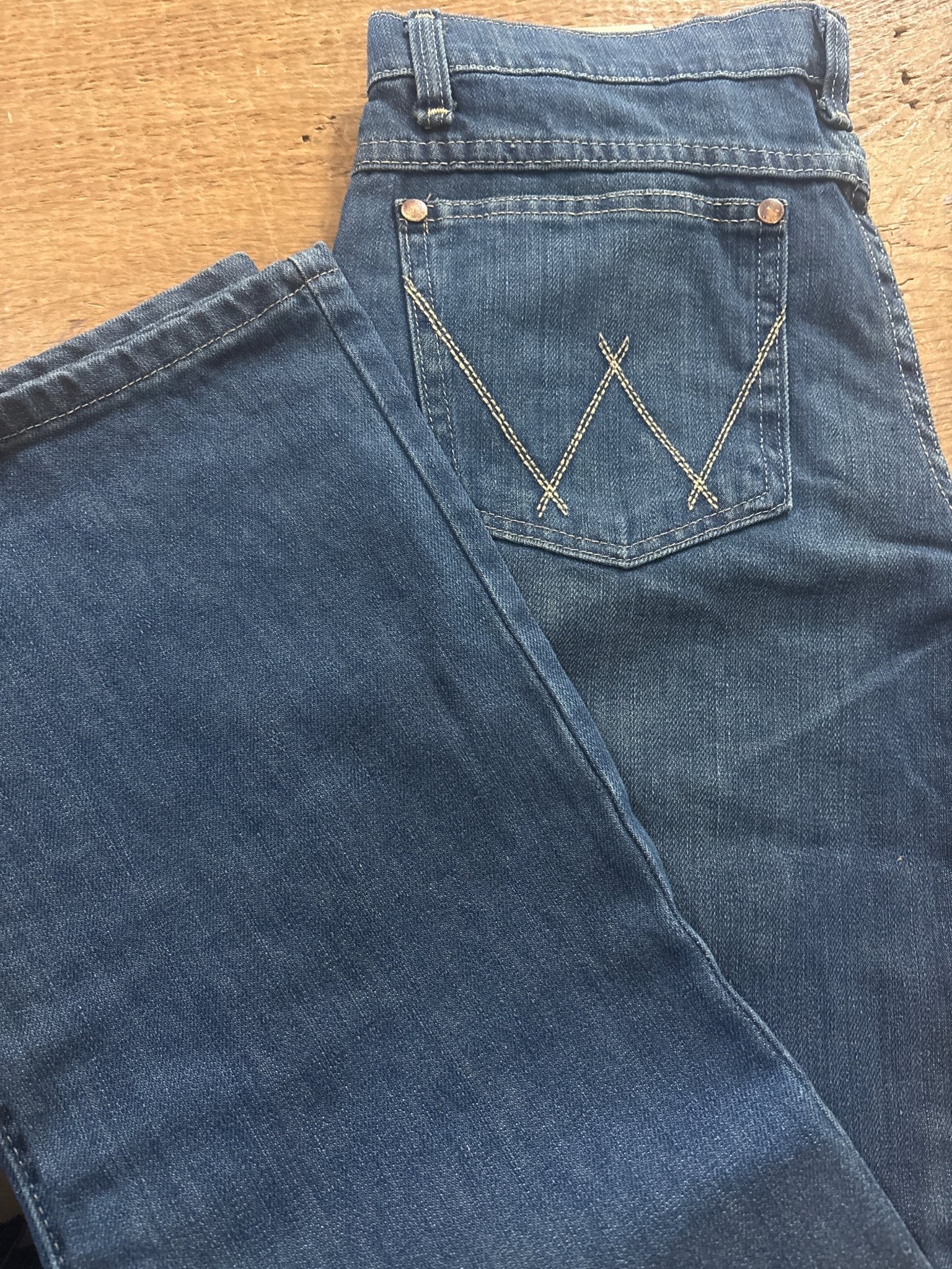 Give your young cowboy timeless Western style with the Wrangler Boys’ Retro Relaxed Bootcut Jeans in the deep Night Sky wash. Built for durability and comfort, these jeans feature a relaxed fit through the seat and thigh for all-day wear, plus a bootcut leg that pairs perfectly with his favorite boots. The classic Wrangler “W” stitching and branded leather patch on the back pockets deliver authentic Western character that never goes out of style.