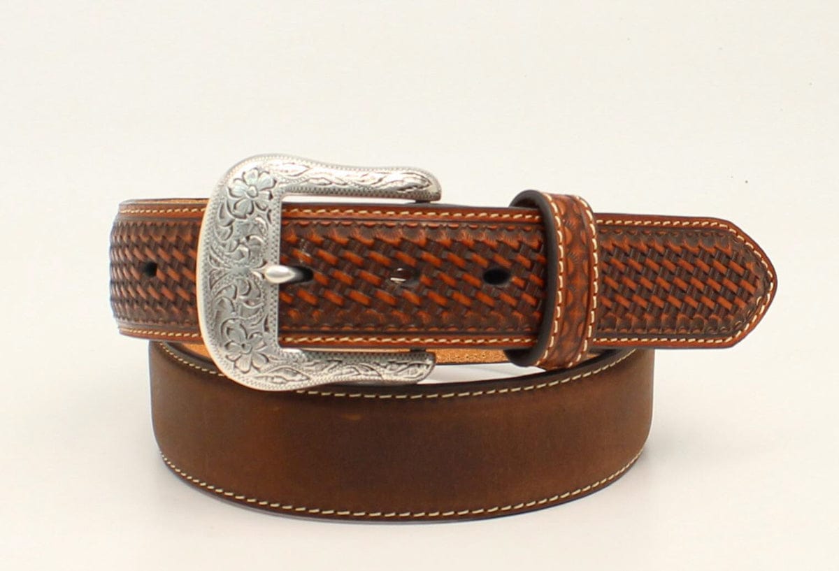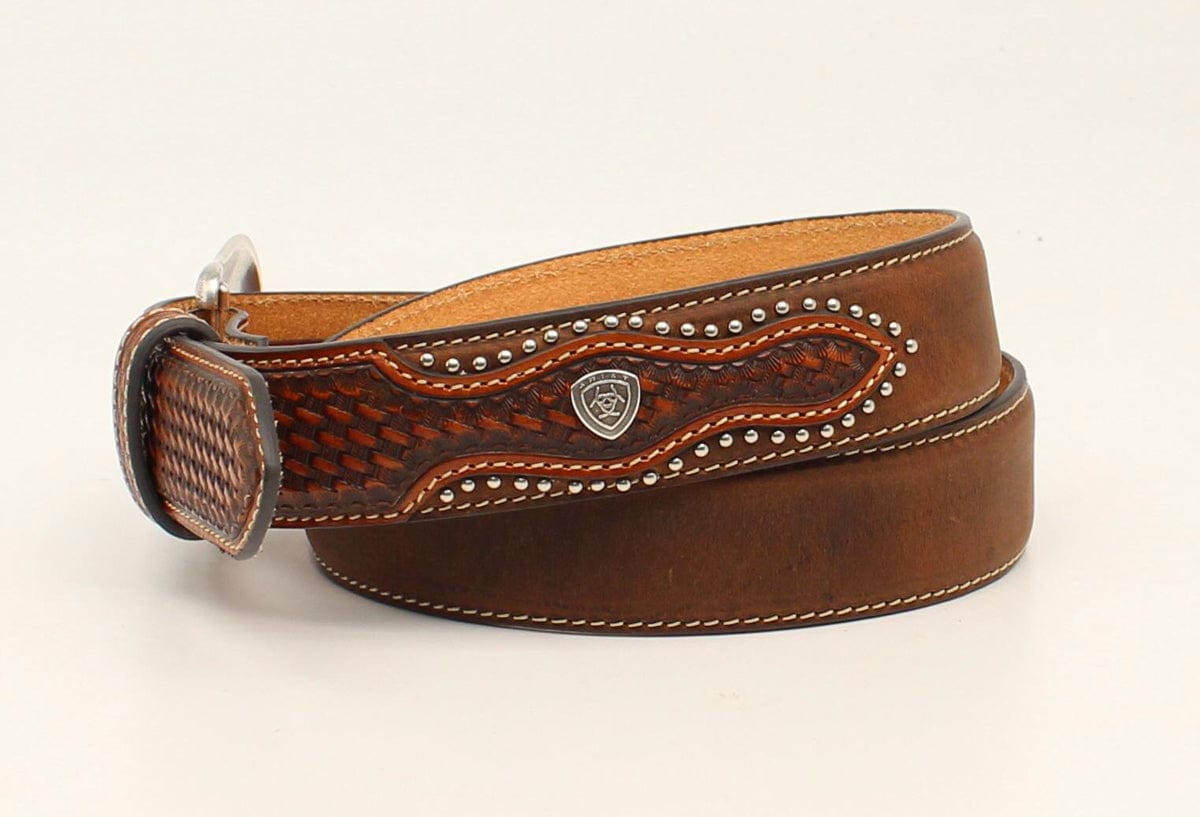Ariat Men’s Distressed Leather Belt with Basketweave Tabs & Conchos – Medium Brown (A1019644)