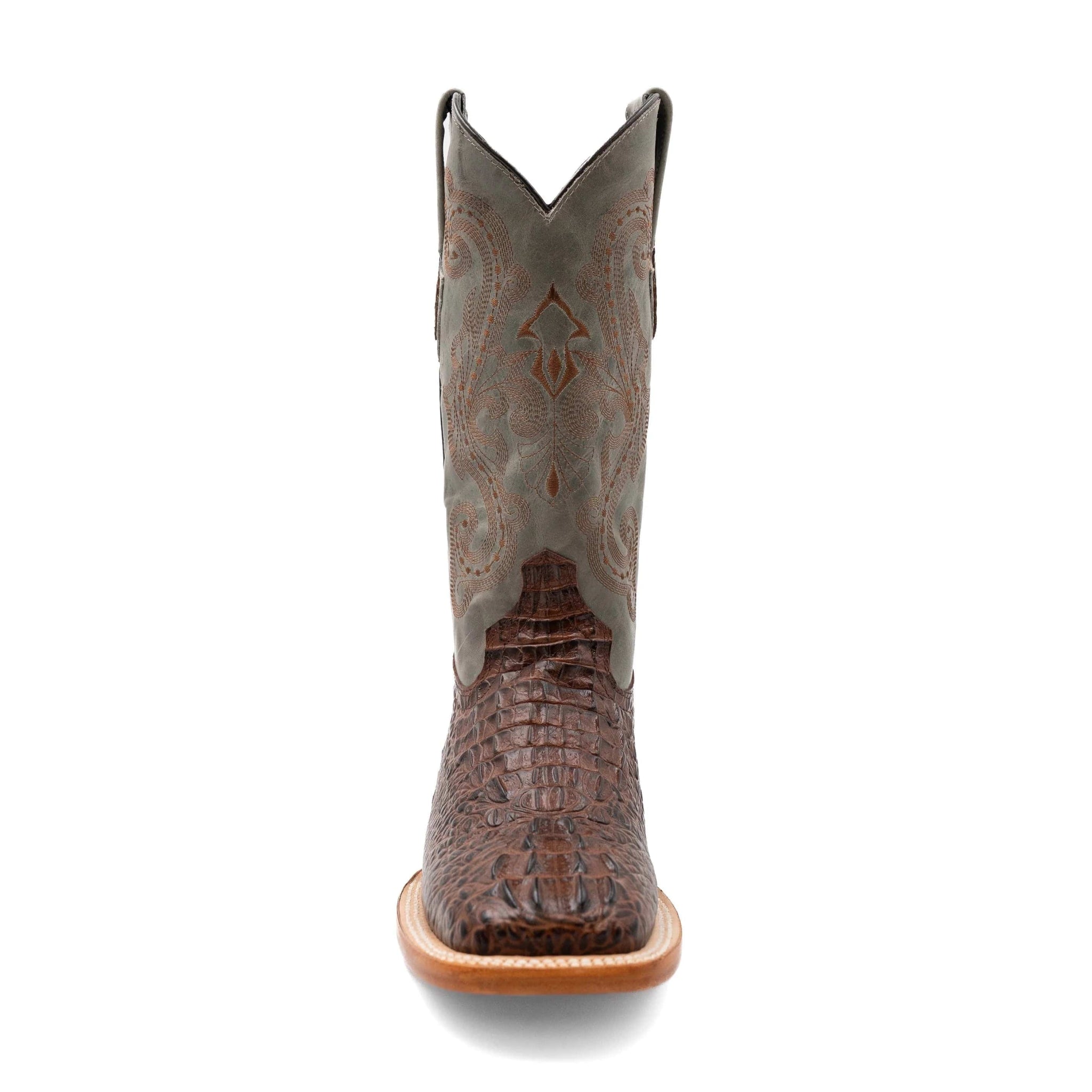 Show off an authentic, exotic look with this caiman crocodile cowhide print leather boot. The sport rust foot and slate shaft with a Western stitch provide a traditional look that works perfectly in the arena, business meetings or social settings. Truly a boot for any occasion and everyday use with a million-dollar look and leather boot pricing.
