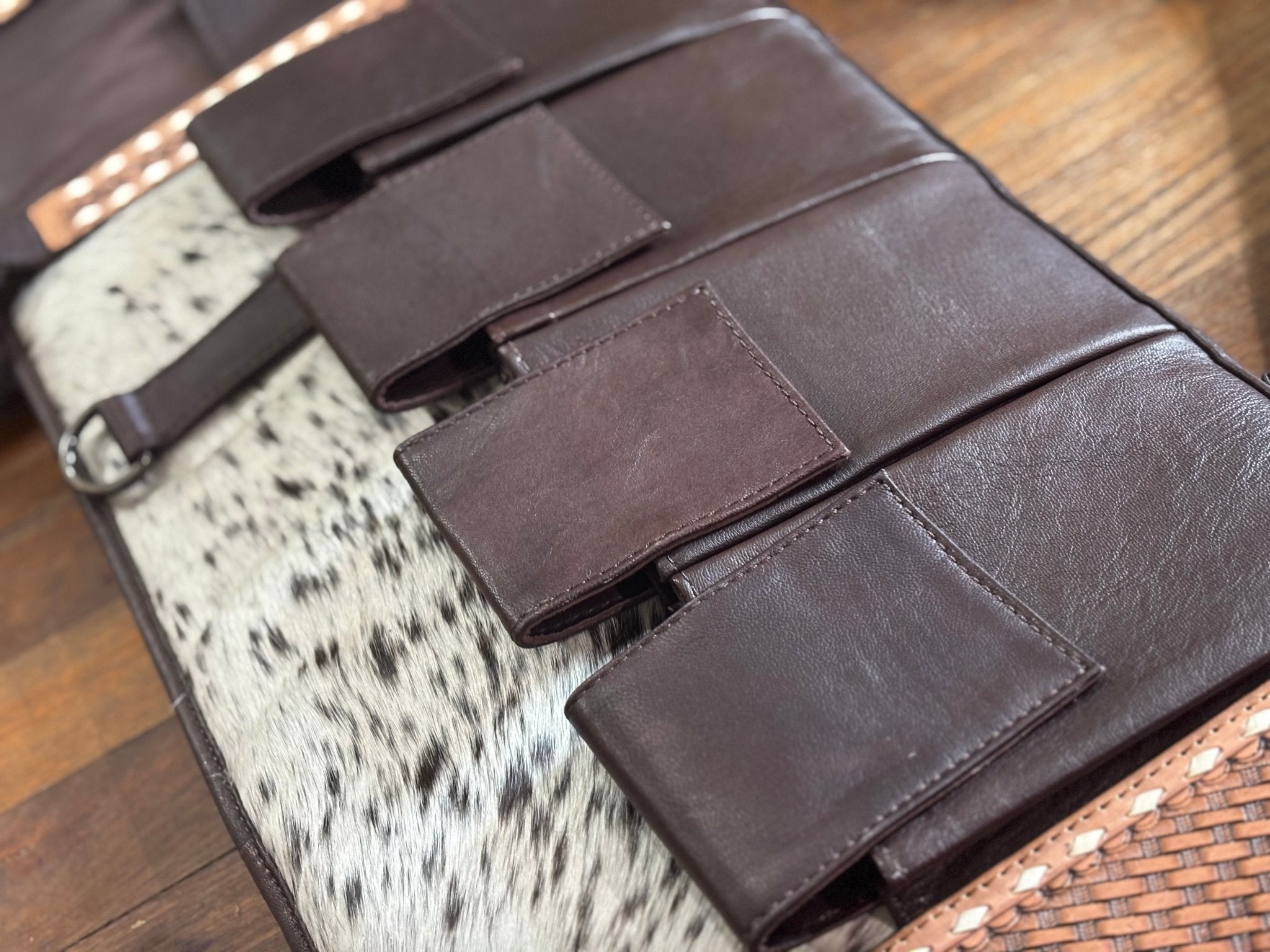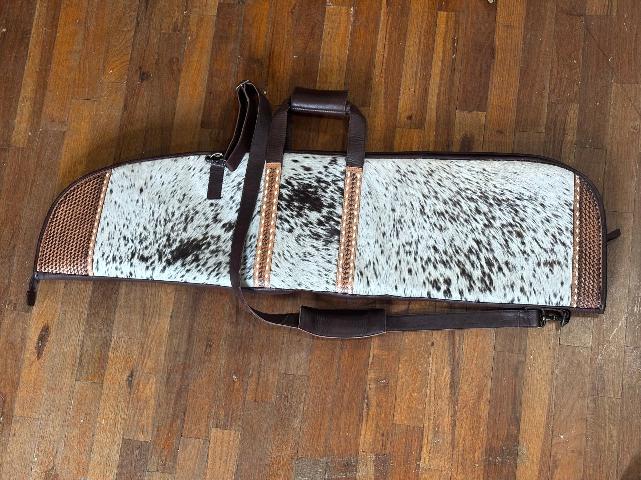 Protect your firearm in true western fashion with the Western Linens Leather & Cowhide Rifle Case — where rugged function meets handcrafted style. Built from durable genuine leather and accented with premium cowhide, this case is as tough as it is timeless. Featuring classic basket weave detailing and reinforced stitching, it’s designed to keep your gear safe and your look sharp.