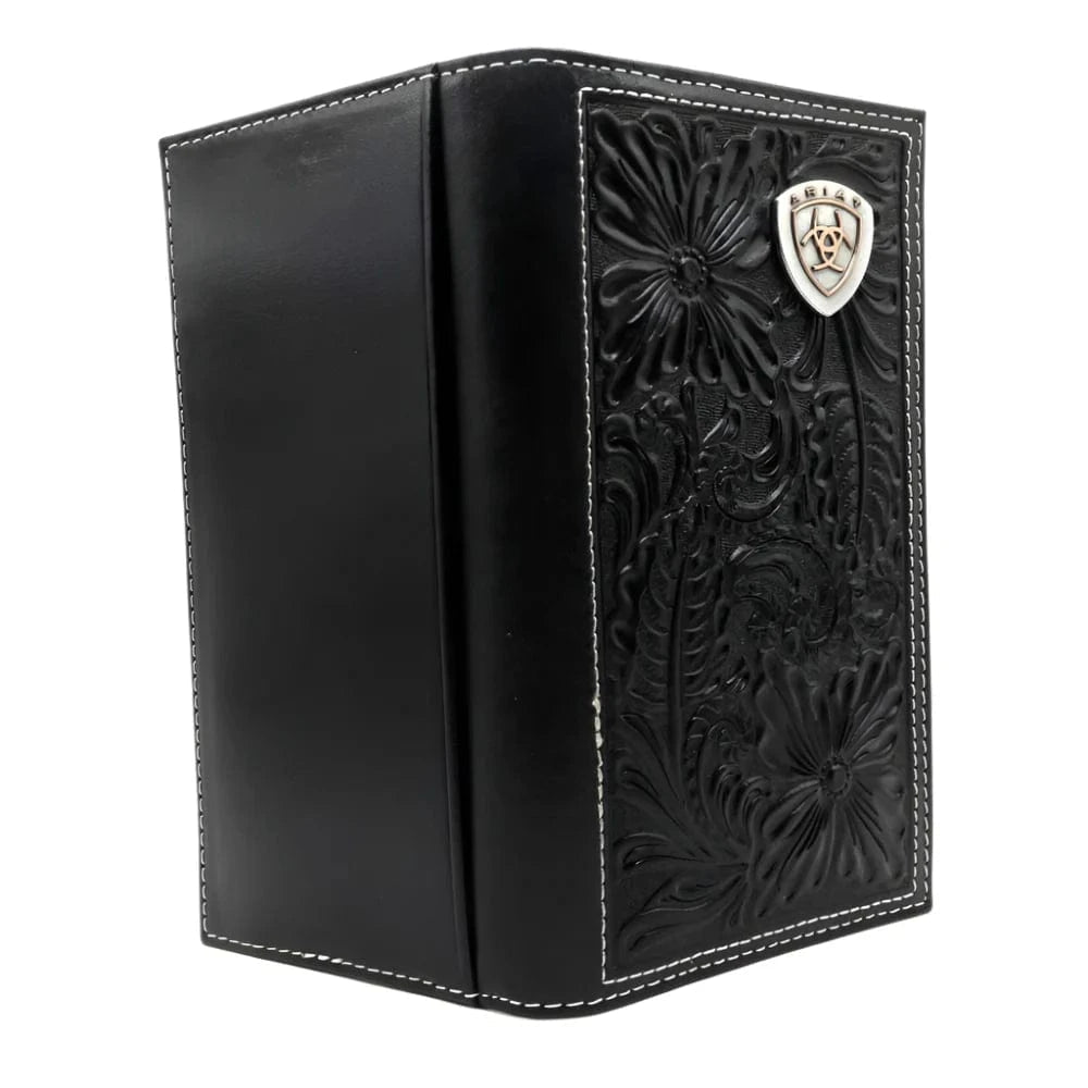 Add timeless western style to your everyday carry with this Black Rodeo Wallet by M&F Western Products®. Made from genuine top grain leather, this wallet showcases detailed floral tooling on the exterior for a bold western look. Built with a slim fit design and reinforced by heavy-duty stitching, it combines durability with practicality. The interior includes multiple credit card slots and plenty of room to keep your essentials secure and organized.