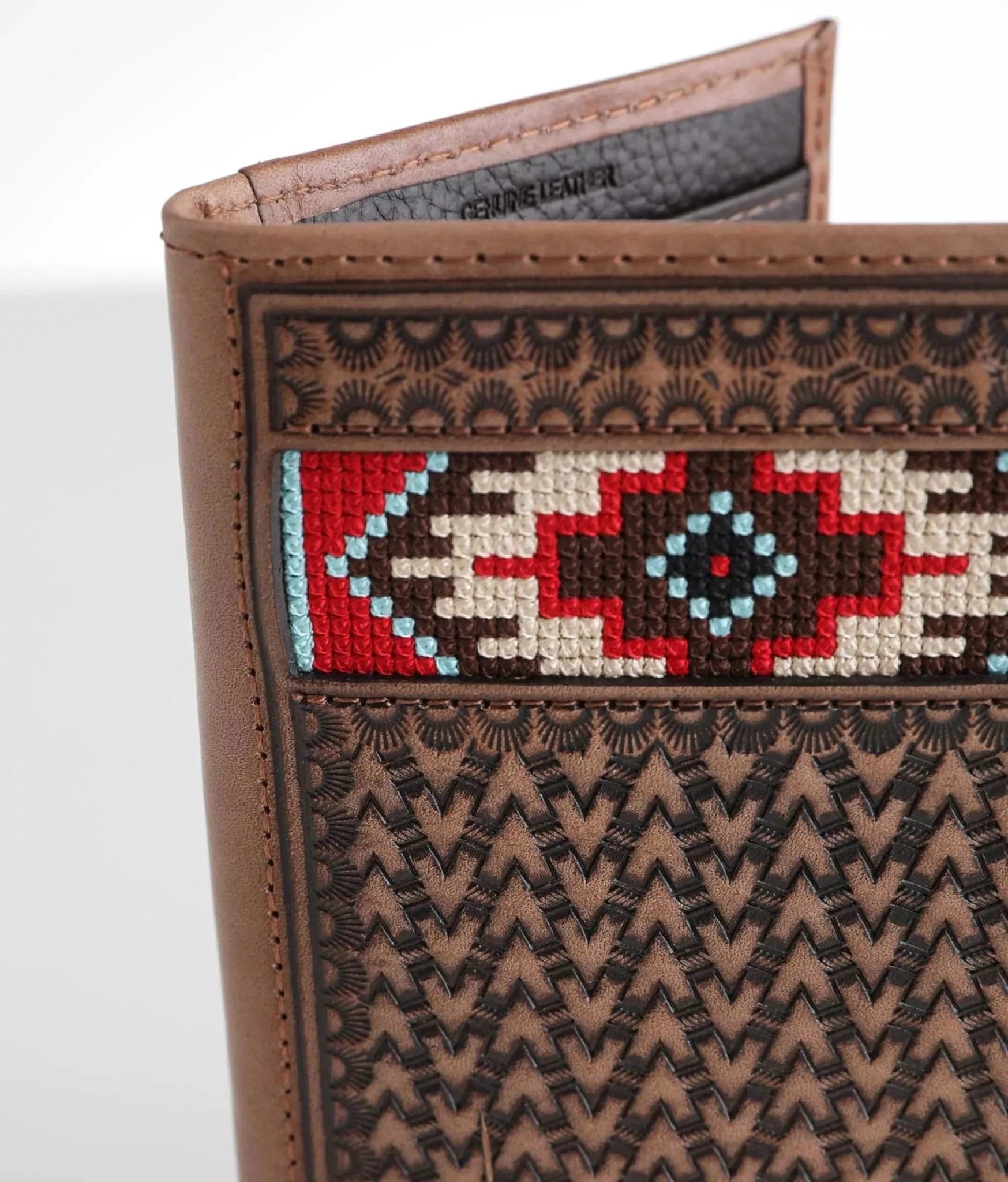✔️ Western Craftsmanship – basketweave leather with embroidered design