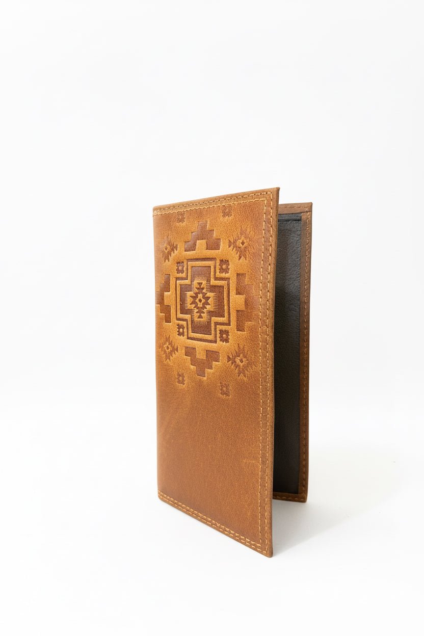 Crafted from genuine leather, this long Western wallet features a bold square cross embossed design with subtle Southwestern/Aztec-inspired detailing—delivering a clean, rugged look that fits right in from the ranch to town.