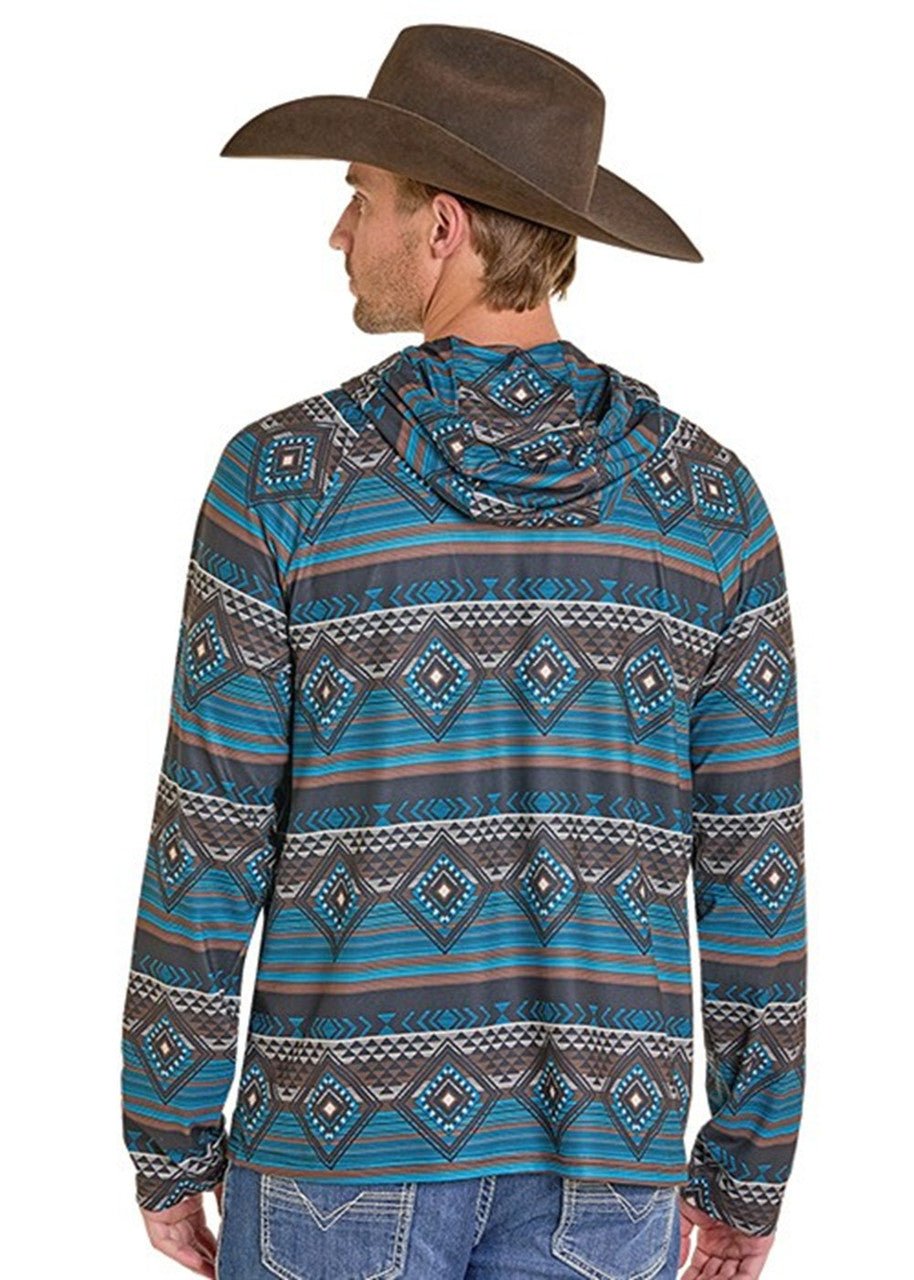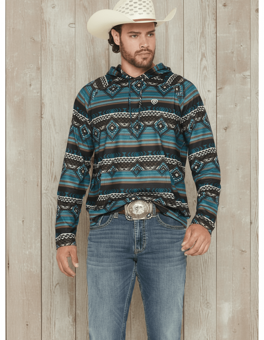 Rock & Roll Men’s Teal Aztec Performance Hoodie – Western Athletic Pullover