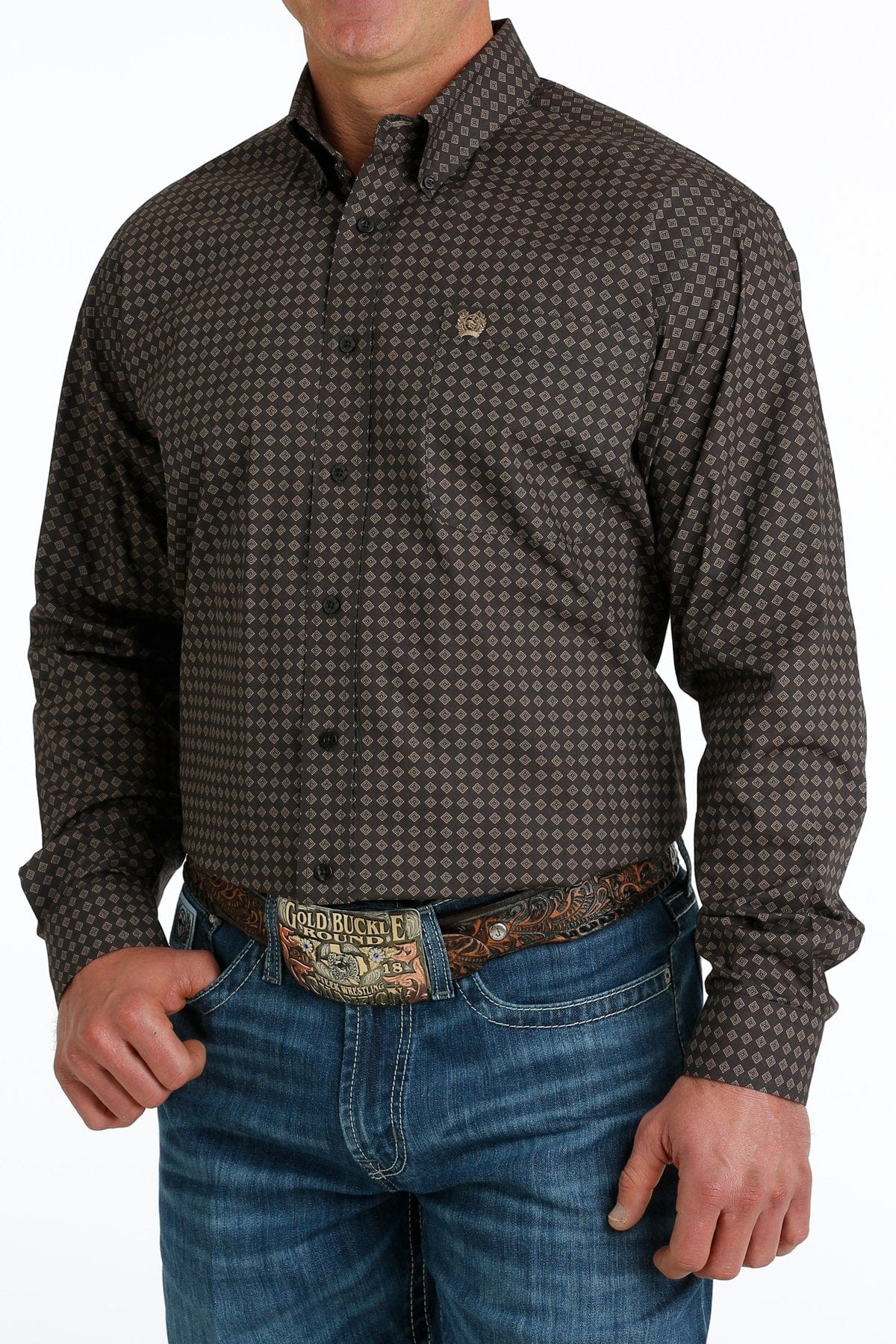 Cinch Men’s Diamond Print Button-Down Western Shirt Brown