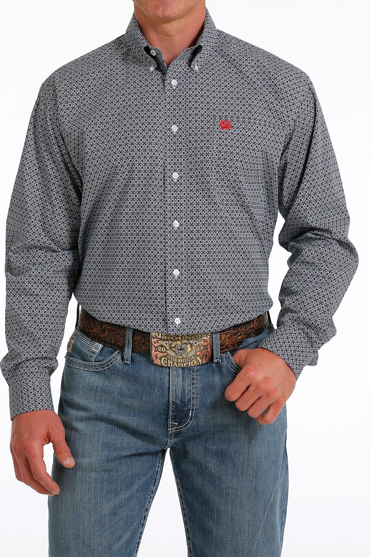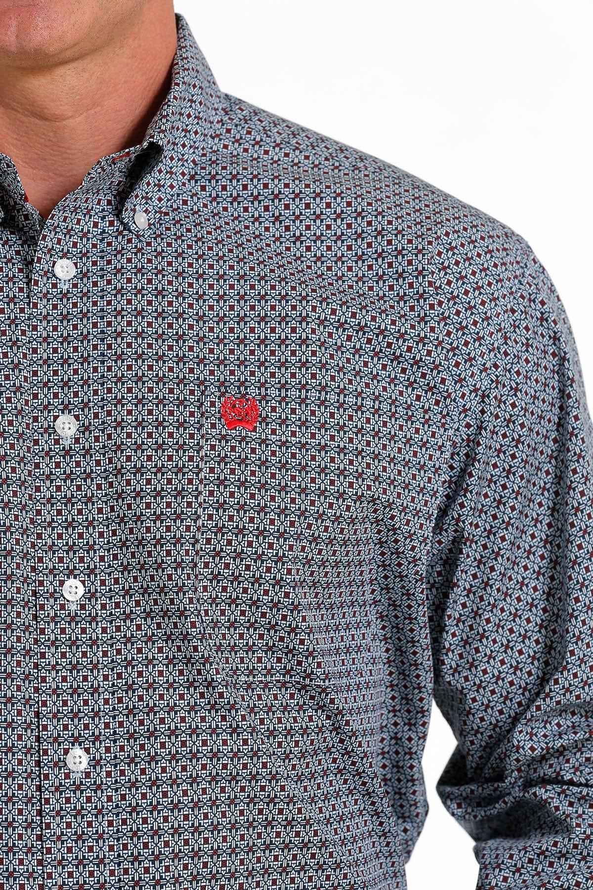Light Blue, Navy, and Red geometrical pattern, button front Cinch Western Shirt MTW1105570