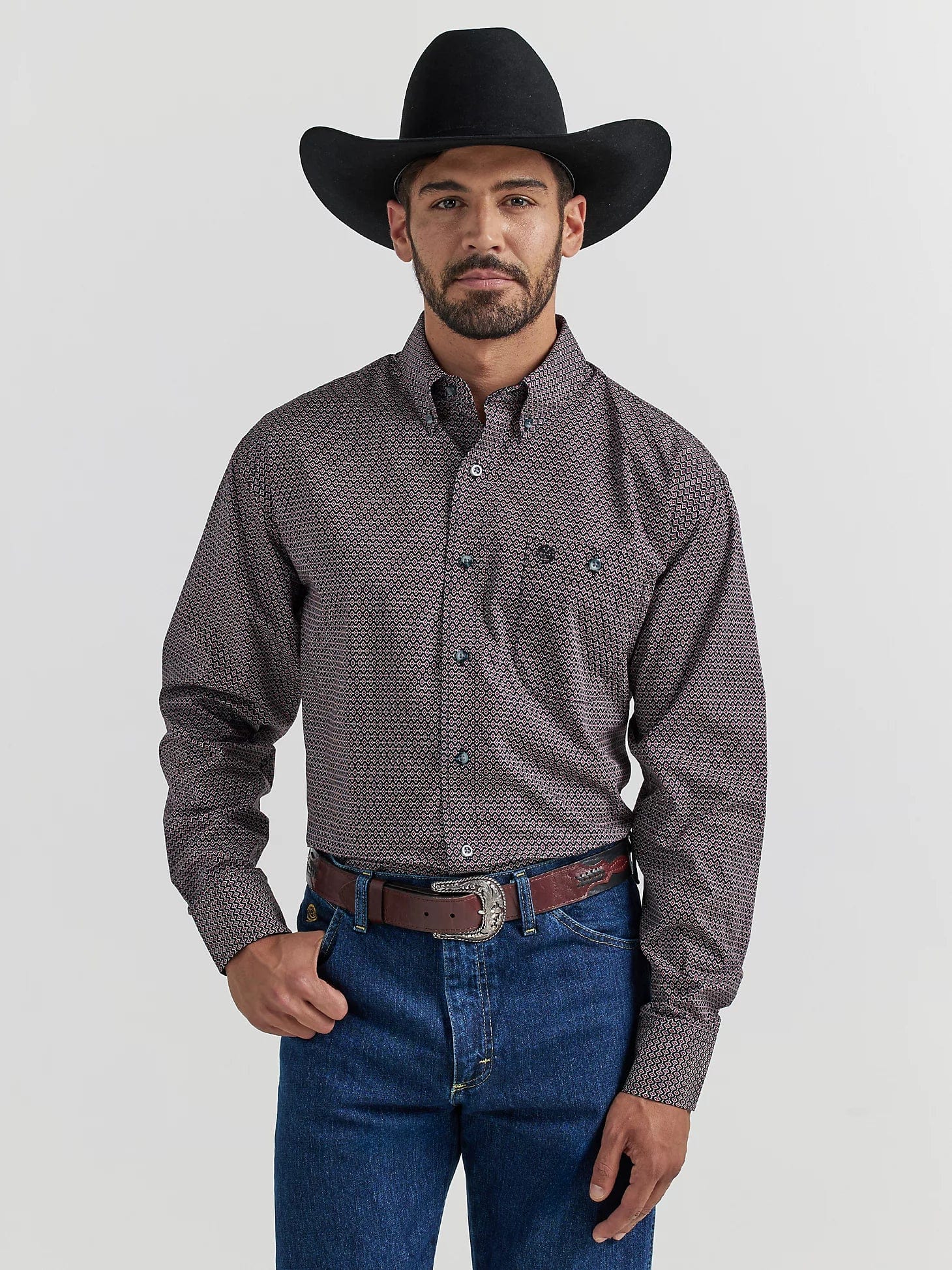 Take the spotlight in style wearing the George Strait™ One-Pocket Button-Down Shirt. This long-sleeve button-down features a straight back yoke, one chest pocket, and adjustable cuffs. With its relaxed fit, this classic collared shirt offers plenty of room through the shoulders and torso. Plus, it comes in a wide variety of colors and patterns.