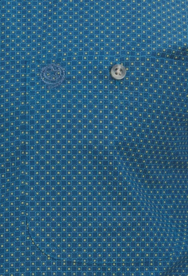 Wrangler Men’s George Strait Collection Deep Aegean Blue & Green Geo Print Long Sleeve Western Shirt