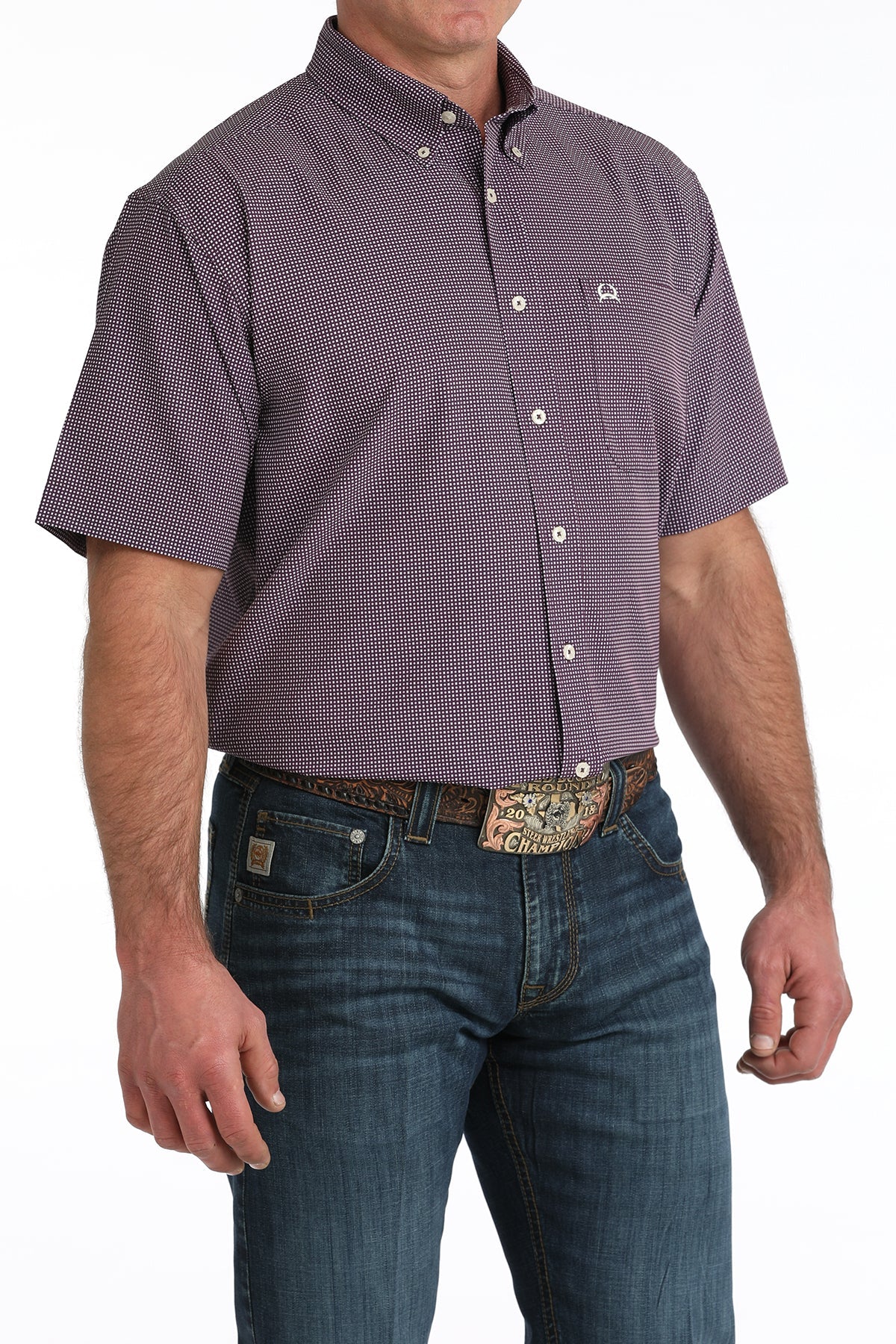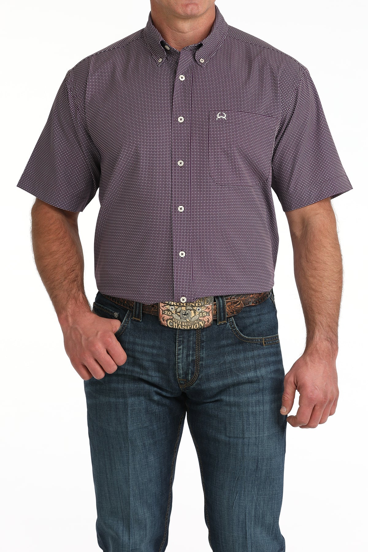 Built for comfort, performance, and Western style, the Cinch Men’s Short Sleeve Purple Geo Print Arena Flex Shirt is designed to keep up with long days and warm weather. This shirt features a bold purple micro geo print that delivers a sharp, modern Western look whether you’re in the arena, at work, or heading out for the evening.