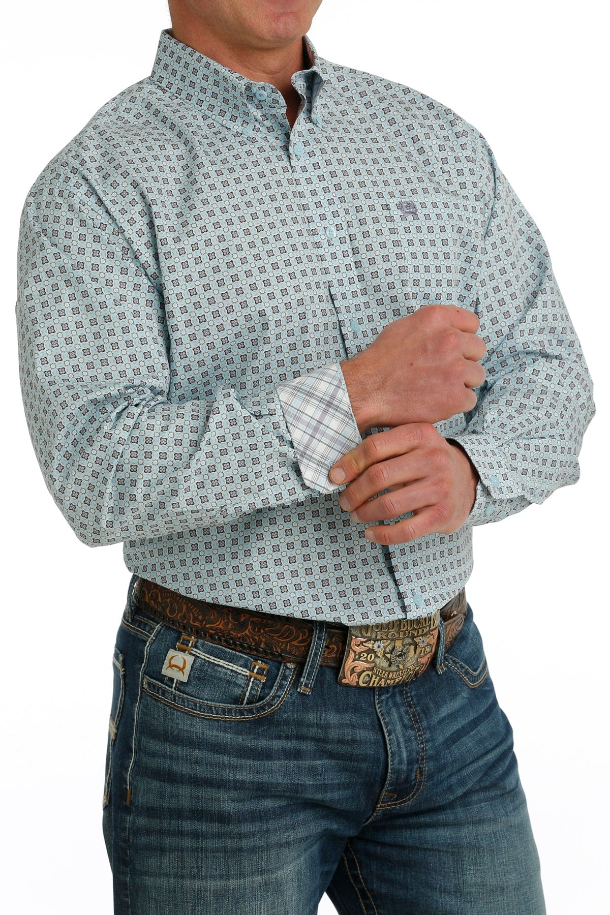 Cinch Men's Geometric Long Sleeve Button Down Light Blue/Purple