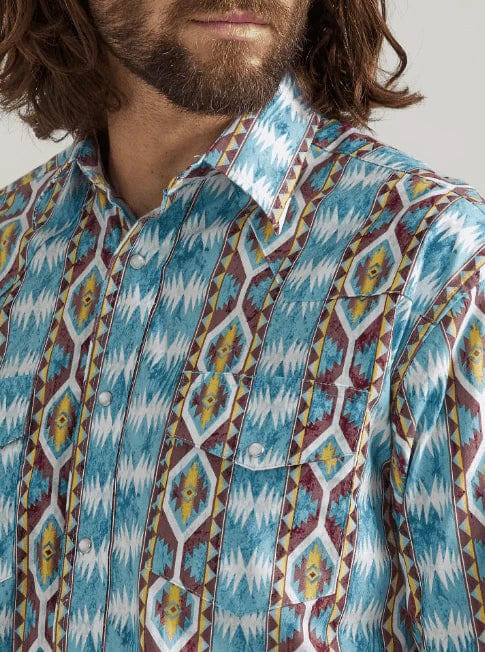 Wrangler Mens Classic Fit Checotah Brown and Turquoise