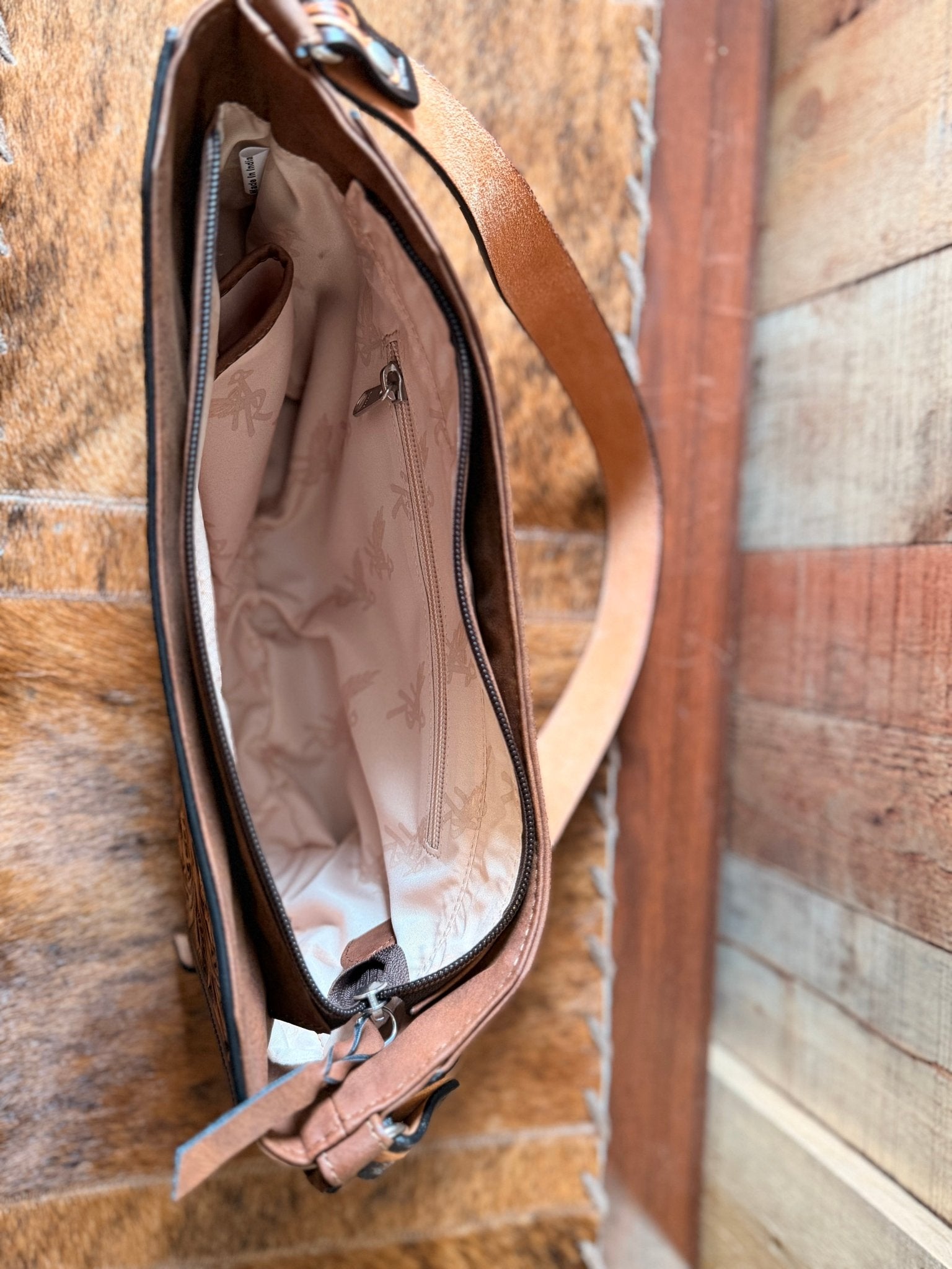 Perfect for daily use, western events, or dressing up a casual outfit, this tooled leather shoulder bag is a staple accessory for any western wardrobe.