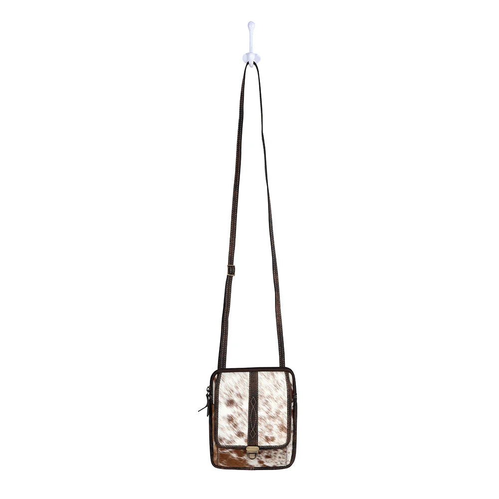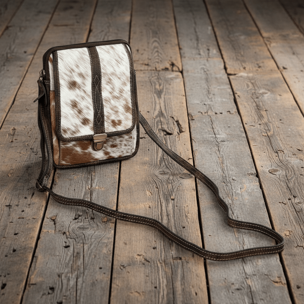 Each bag features a unique natural hide pattern, meaning no two pieces are exactly alike. The adjustable leather strap provides comfortable hands-free wear, and the interior compartment offers just enough space for your phone, wallet, and keys.