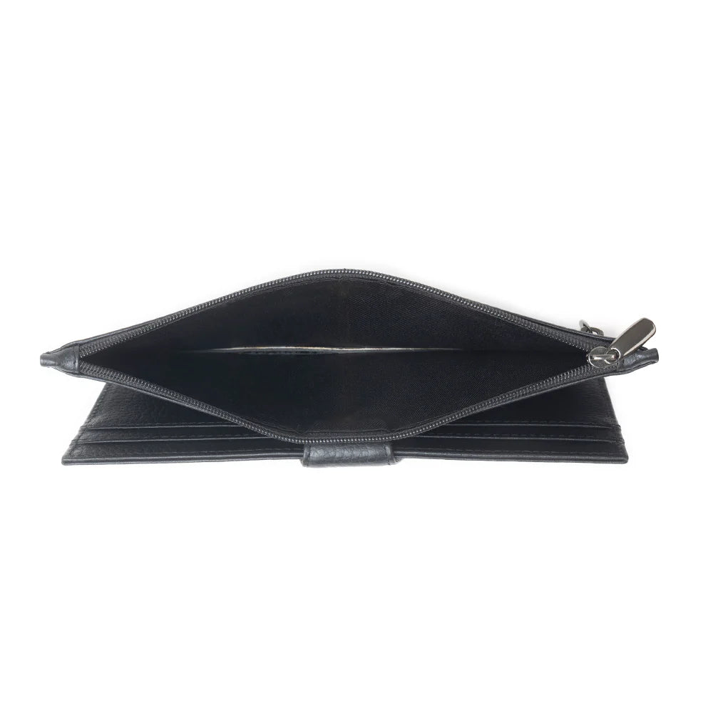 A striking blend of upcycled canvas and rich Western leather, the WanderWeave Woven Leather Zipper Wallet in Aztec Ivory channels free-spirited flair with artisanal roots. The bold geometric pattern evokes classic desert motifs, while the compact design keeps essentials close at hand. With rugged yet refined textures, this Myra wallet is a perfect accent for the modern cowgirl’s everyday ensemble.