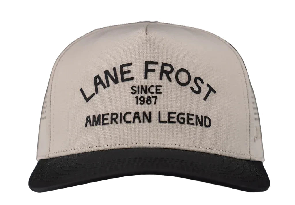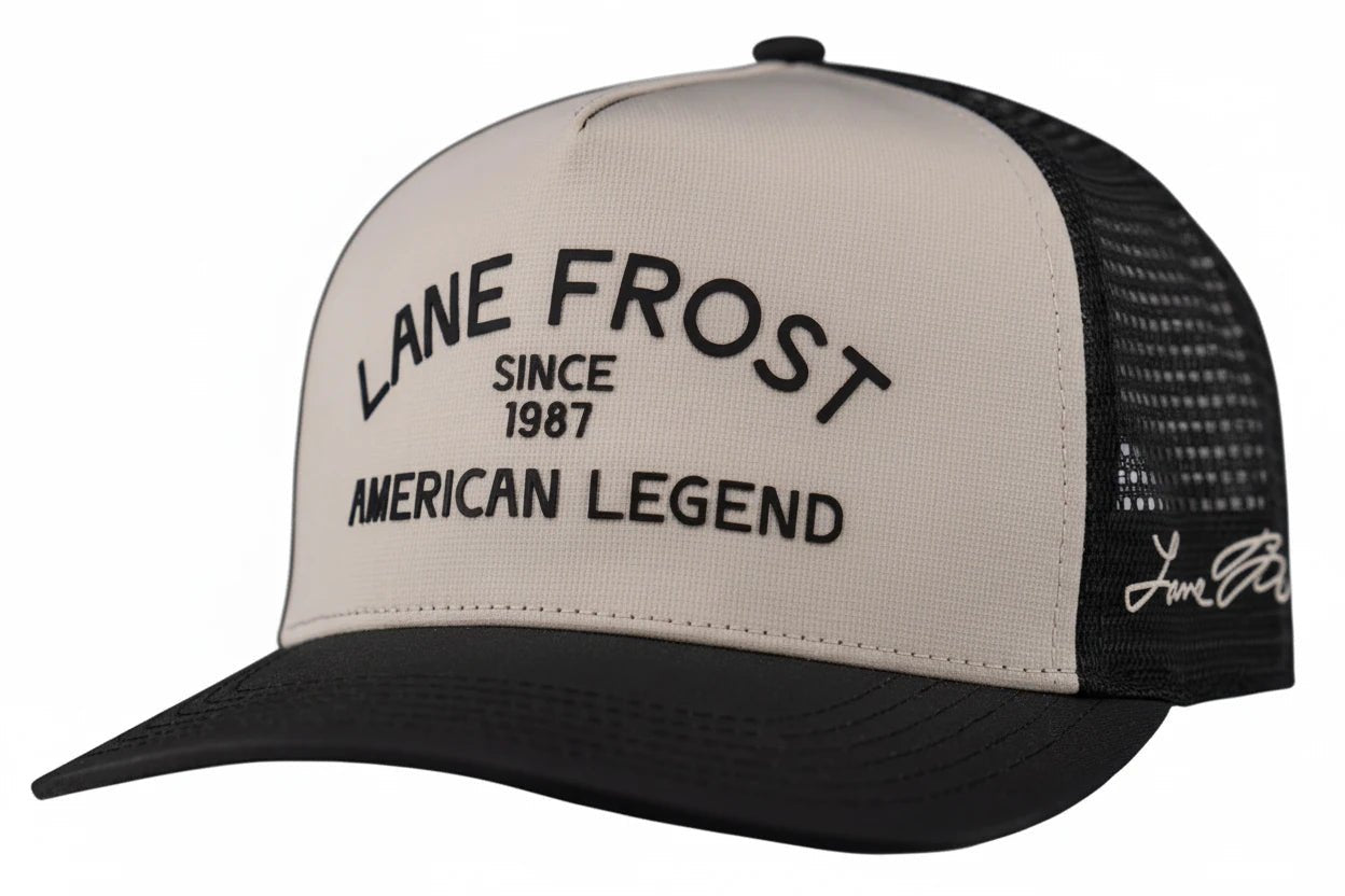 Classic, bold, and rooted in rodeo history — the Lane Frost Caliber Cap pays tribute to an American legend. Featuring a cream front panel with “Lane Frost – American Legend Since 1987” lettering, this cap honors the legacy of one of rodeo’s most iconic names.