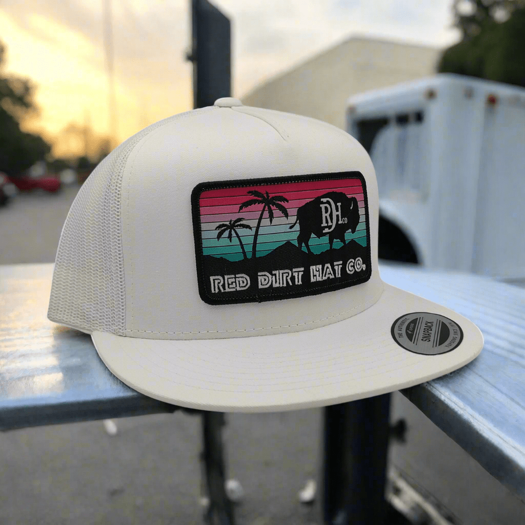 Custom classic white/black Flatbill style snapback cap featuring the new “Miami Vice” patch