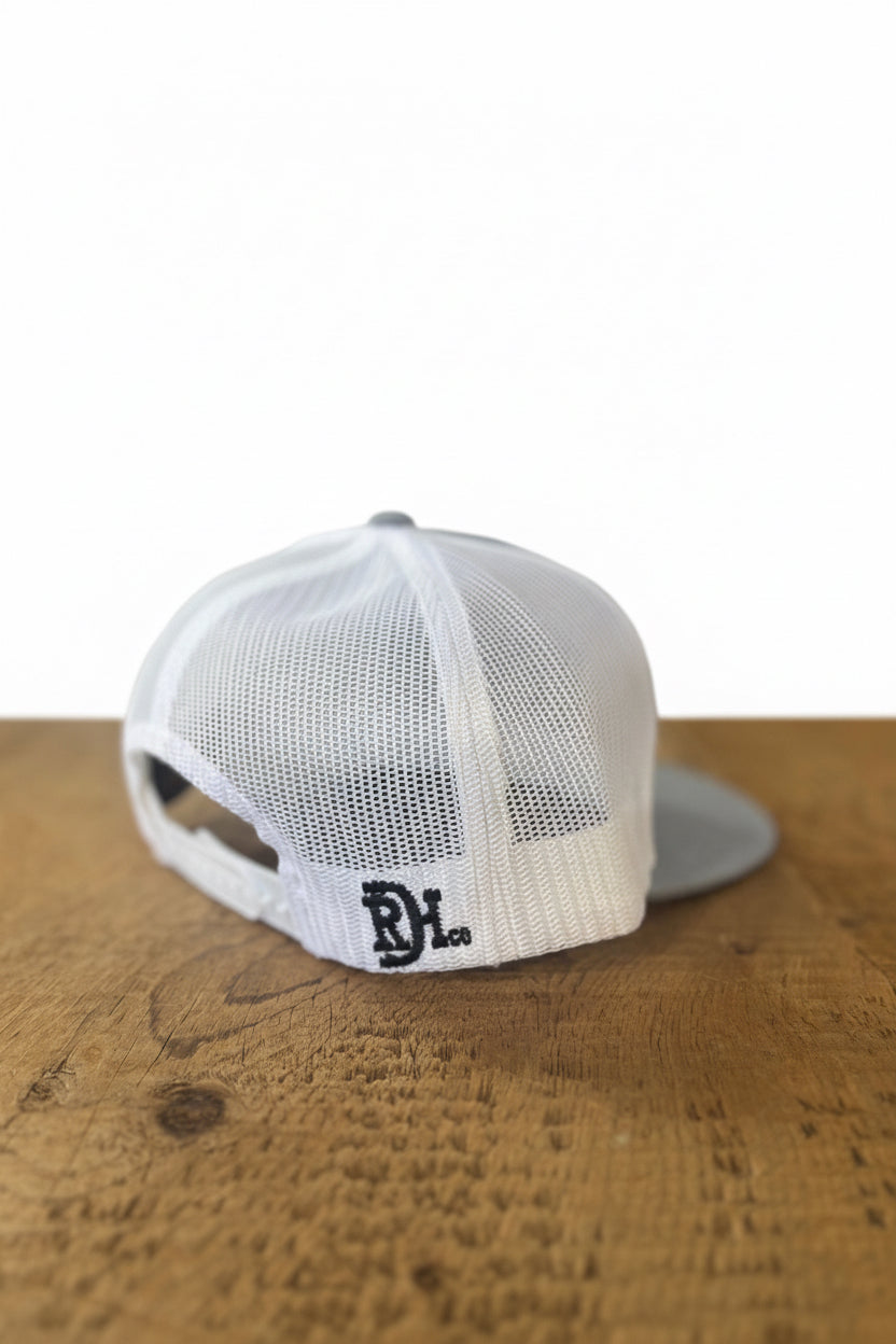 Step into bold Western style with the Red Dirt Hat Company Trailblazer Cap in heather grey and white. Built for everyday wear with a clean, classic look, this cap features a structured 5-panel design and a flat bill for that modern Western edge.