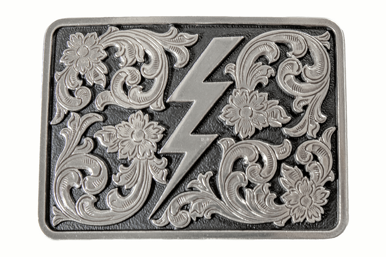 Add a spark of bold style to your Western look with the Blazin Roxx Women’s Rectangle Lightning Bolt Buckle. This striking silver-tone buckle features a detailed lightning bolt design set against engraved scrollwork for the perfect blend of edge and elegance. The rectangular shape gives it a classic silhouette, while the high-polish finish and intricate detailing make it stand out. Fits standard 1.5” belt straps — ideal for rodeos, concerts, or everyday outfits with a Western twist.