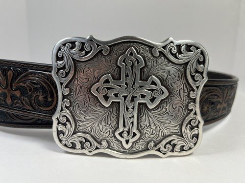 The eye-catching silver-tone buckle features traditional western engraving and is removable, giving you the freedom to customize your look. Whether you’re dressing up jeans for a rodeo, Sunday service, or everyday wear, this belt adds the perfect finishing touch.