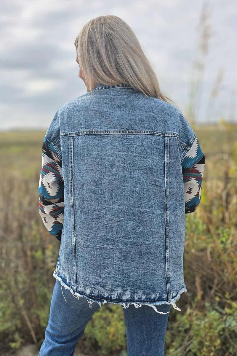 Blend southern pride with bold western style in the Sterling Kreek Women’s Southern Roots Denim Jacket. This standout piece features a classic denim body paired with vibrant Aztec fabric panels on the chest pockets, hood, and sleeves, offering a unique layered look without the bulk.