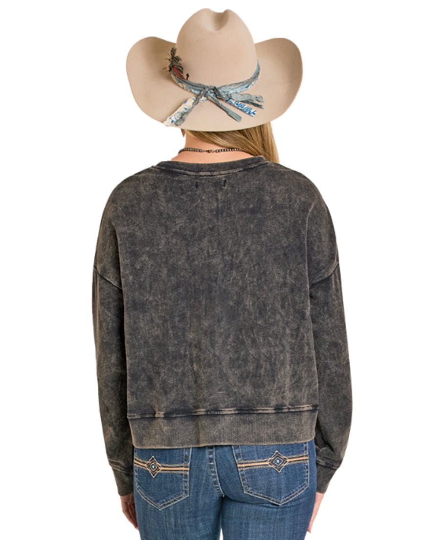 Bring bold Western attitude to your casual style with the Rock & Roll Women’s Black Graphic Pullover. Designed for comfort and flair, this sweatshirt features a striking Western-inspired graphic across the front—perfect for women who live life with a little grit and a lot of style. The soft, midweight fabric keeps you warm while offering a relaxed fit that’s perfect for layering or wearing on its own.