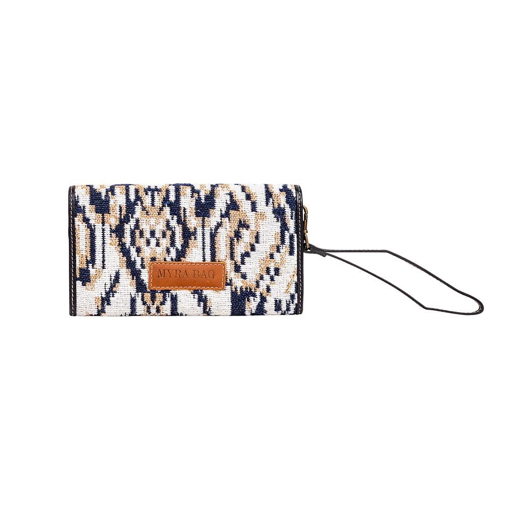 The Upcycled Woven Canvas & Ebony Leather Wallet brings sustainability and style together in one stunning design. This eco-conscious wallet showcases a bold woven canvas pattern from the collection, beautifully framed with luxurious ebony leather trim and a matching front buckle. Inside, you’ll find a thoughtfully organized layout with multiple compartments and a secure zippered pocket, perfect for keeping your essentials safe and stylish. A snap-close front flap adds convenience while enhancing its classic charm. Whether carried solo with the wristlet strap or tucked in your favorite bag, this wallet is as functional as it is fashionable.