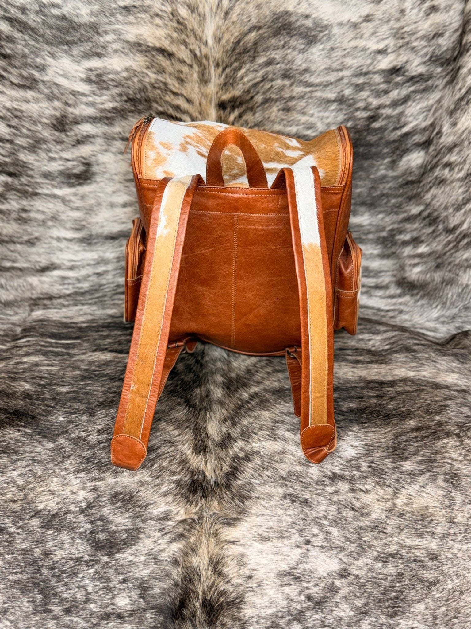 Designed for both beauty and function, it features a spacious main compartment, secure zipper closure, and adjustable leather straps for comfortable everyday wear. Each bag is one-of-a-kind, with natural hide variations and detailed tooling that make it a true statement piece. Perfect for travel, school, or daily adventures, this backpack blends rugged Western character with a vibrant, free-spirited style.