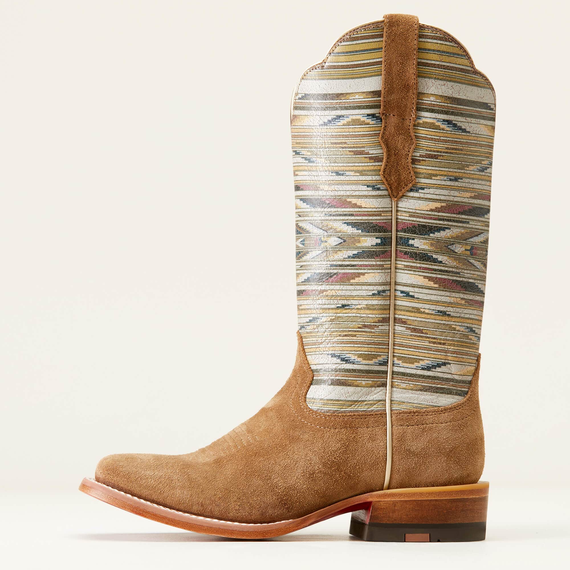 Part of Ariat’s second collaboration with Centinela Traditional Arts, this limited-edition women’s boot celebrates the artistry of Chimayo weaving — a treasured Southwestern tradition. Designed with a bold woven-inspired stitch pattern and crafted from premium full-grain leather and suede, it captures the spirit of heritage craftsmanship while offering modern-day comfort.