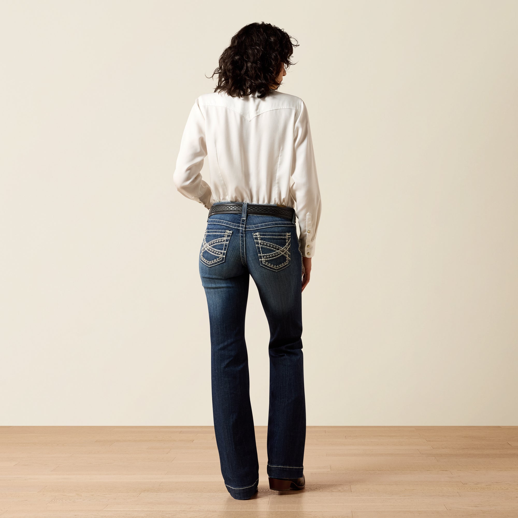 The Ariat Women’s Marine Mid Rise Trouser Jeans blend timeless Western style with a flattering, feminine fit. Featuring a comfortable mid-rise waist and classic trouser leg, these jeans create a sleek, elongated silhouette that moves effortlessly from saddle to street.
