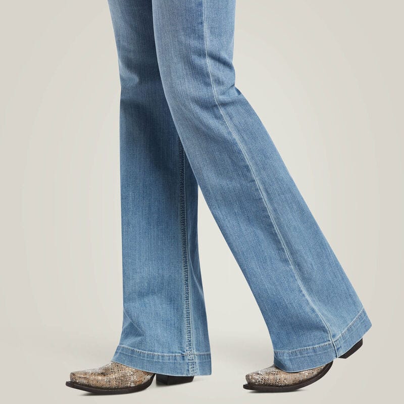 This high-rise trouser is slim-fitting through the hip, thigh, and knee then opens up into the trouser leg we all know and love. With a light wash and a bit of distressing, it's a staple jean that goes with crop tops to graphic tees.