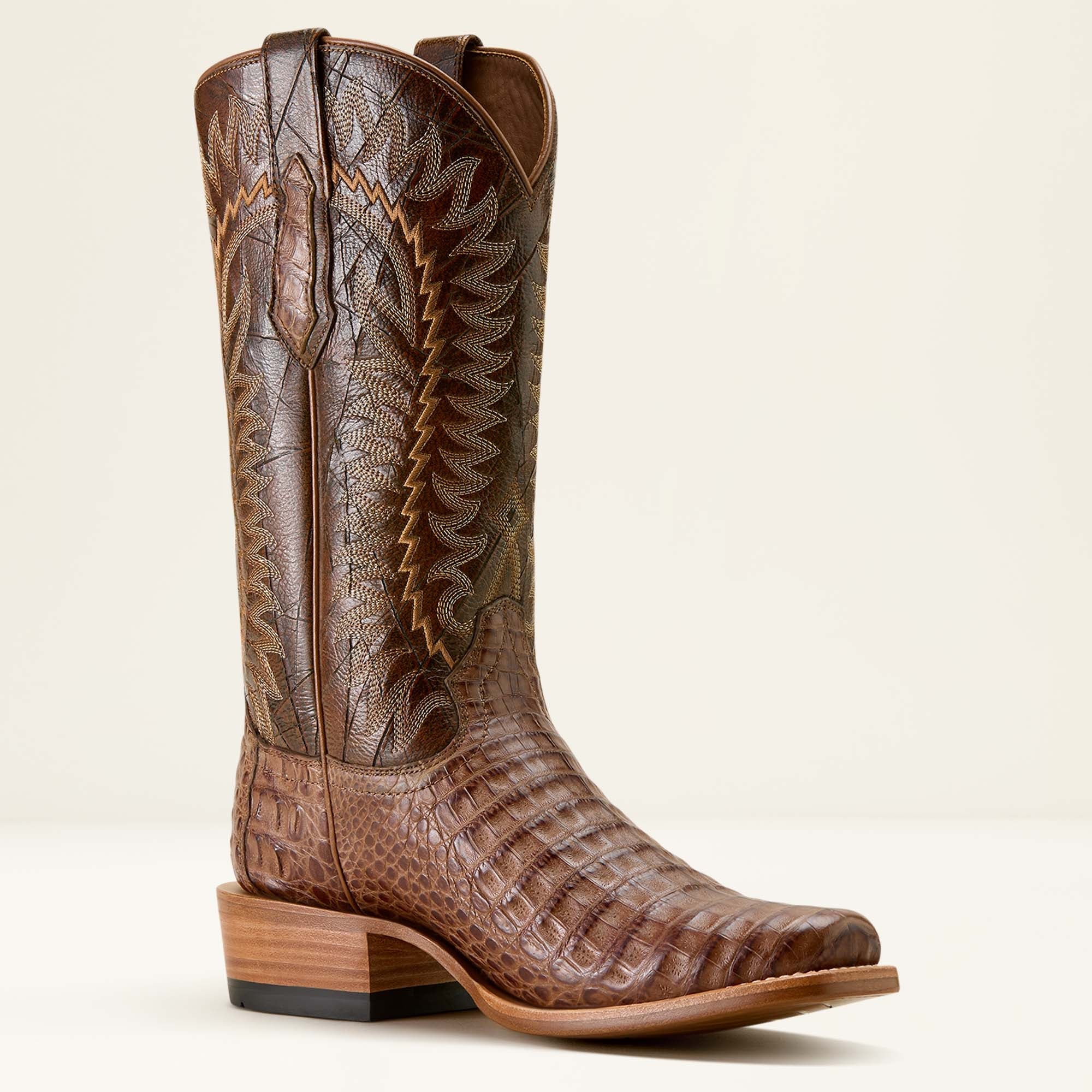 Ariat Men’s Exotic Caiman Belly Western Boots are meticulously handcrafted using premium exotic caiman belly leather. Each pair is expertly crafted with attention to detail, ensuring exceptional quality and durability. These boots are designed to withstand the rigors of daily wear while maintaining a stylish and sophisticated look.