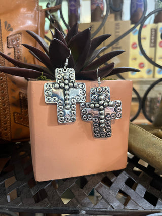 Add a touch of Western flair to your look with the Blazin Roxx Silver Cross Earrings. Crafted with intricate silver-toned cross and border detailing, these earrings bring just the right amount of shine and faith-inspired style. The French hook design ensures easy, comfortable wear whether you’re headed to church, a night out, or a rodeo weekend.