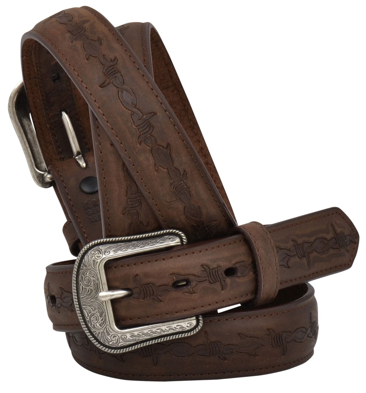 Youth Distressed Leather Barbed Wire Embossing Belt