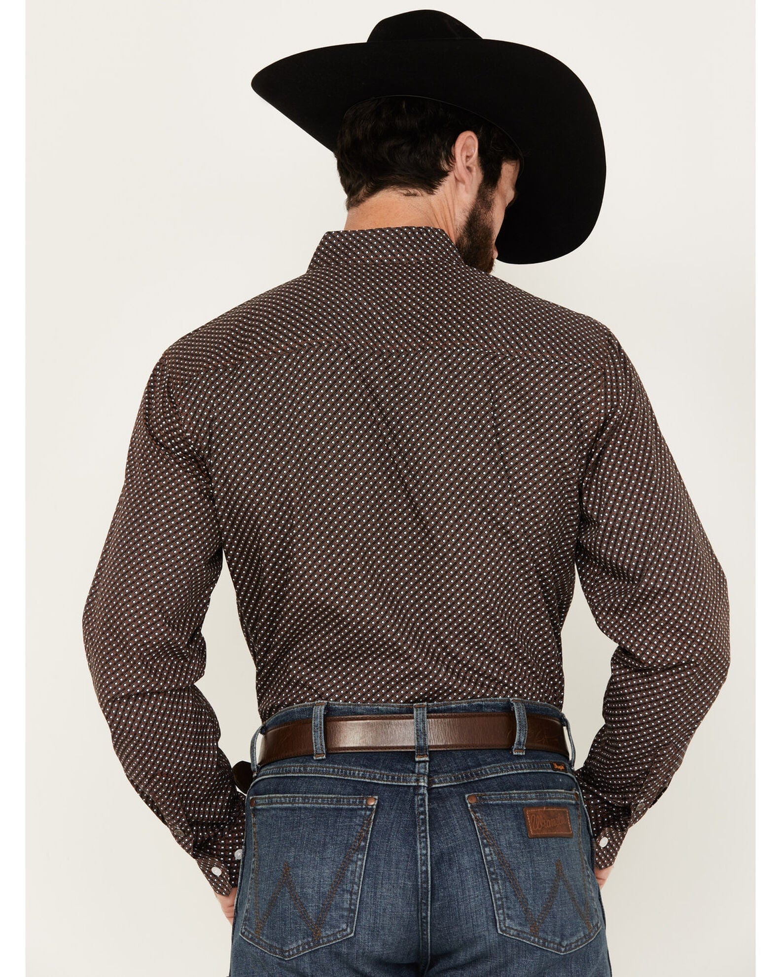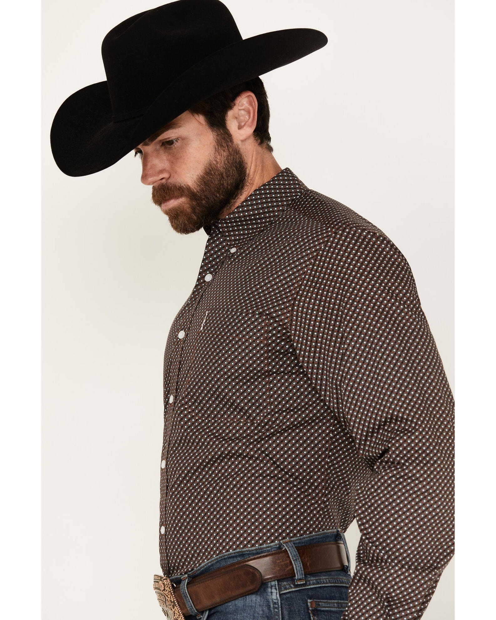 This shirt features a sophisticated geometric print that stands out and adds a stylish touch to any Western outfit. The intricate pattern is perfect for casual and semi-formal Western events.