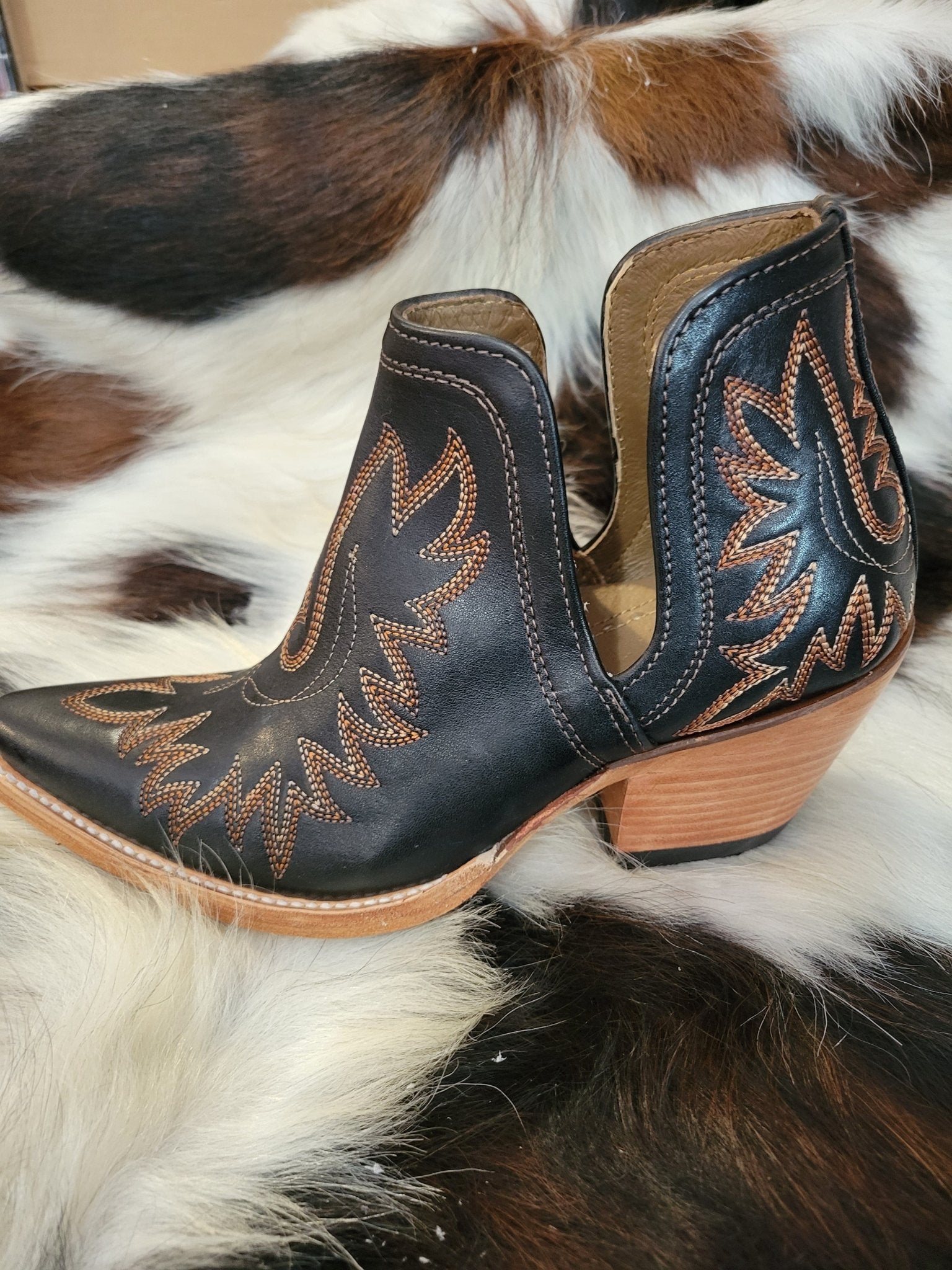 From rodeo scene to the mainstream this gorgeously handcrafted bootie from the Ariat® New West collection fits right in. ATS® technology provides exceptional comfort for that light-on-your-feet feeling.