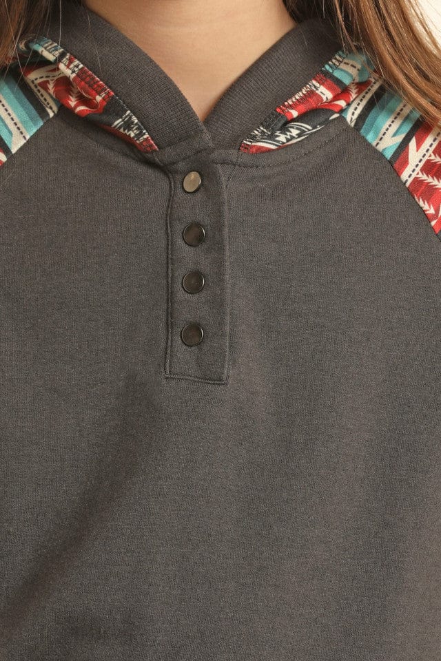 Rock & Roll Girl’s Black Contrast Aztec Sleeve Hoodie