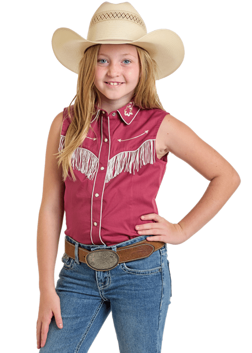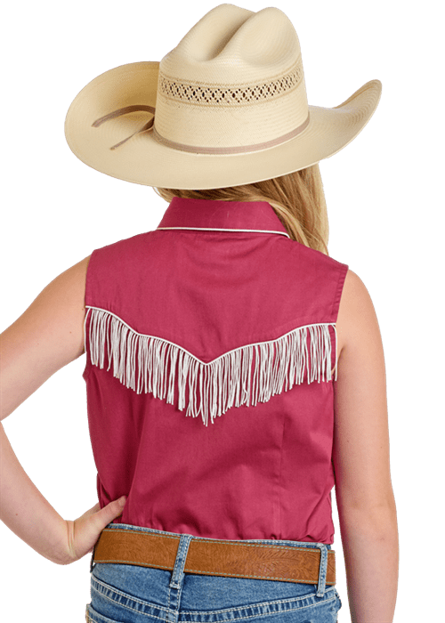 Embrace your wild west spirit with the Rock and Roll Girls Embroidered Western Sleeveless Snap Shirt in a rich, deep wine hue. This shirt combines classic western charm with a modern rock ‘n’ roll twist, making it the perfect addition to your cowboy-inspired wardrobe.