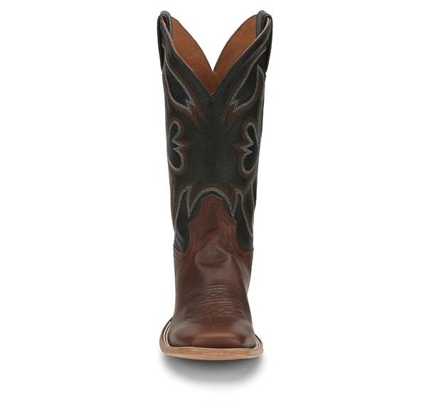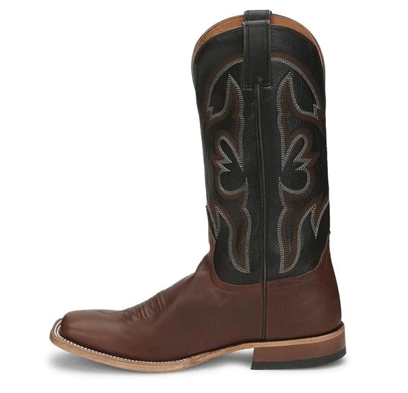 The 11" Sealy Brown boot from our 1911 Collection is crafted with tradition you can see in every stitch. A Black Cabra shaft and Brown leather foot combine to create its handsome classic profile. Inside, the cushion comfort package supports the foot in comfort. It's designed with a channel square toe, a leather sole and a 1 1/4" Western walking heel. Material: Cowhide Toe Shape: Wide Square Heel: Stockman Outsole: Leather Welt: 3/4 Welt Height: 11 in.