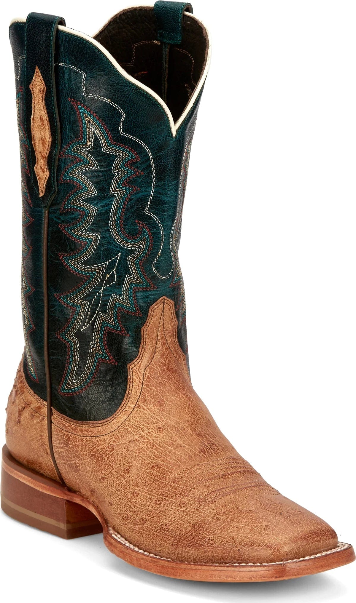 The 11” Ponderosa wide square toe boot in antique coffee is crafted with a nicotine goat upper sitting atop a smooth ostrich vamp. The Removable Cushion Comfort Insert and wide square toe team up to keep your feet comfortable and energized throughout the day. The leather outsole and ¾ double stitch welt cap off this gorgeous boot.