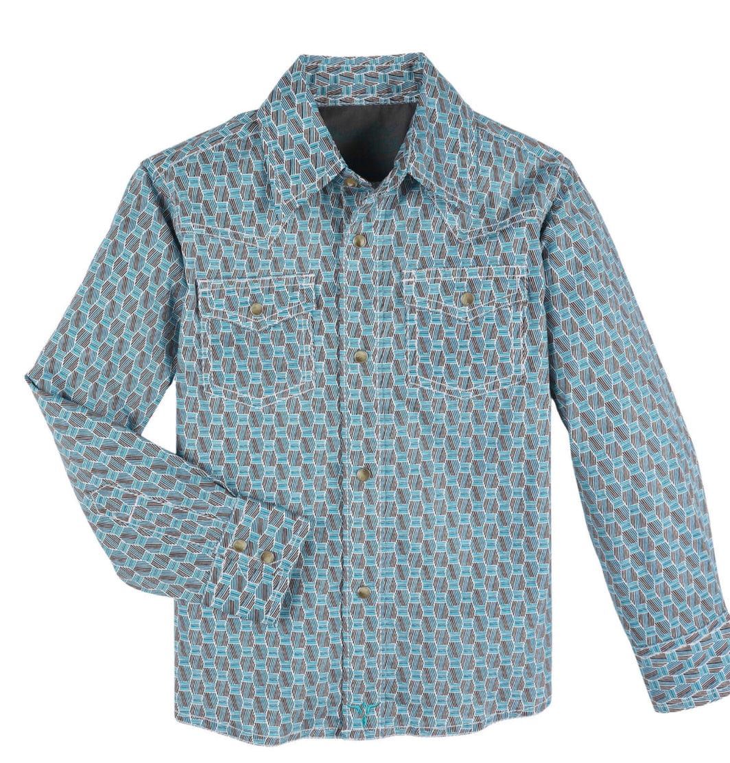 Wrangler Boy’s Geo Print Long Sleeve Snap Comfort Western Shirt